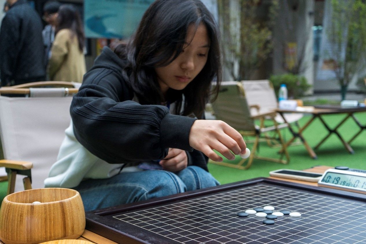本次比赛的主会场在綦江校区瀛溪书院中庭进行。对弈选手静坐于棋秤两边,排兵布阵,推敲于点线之间,尽显谋略。他们一收一放,落子铿锵有力,小小棋盘上的精彩角逐令人赞叹,一时间难辨胜负。凭借选手们敏捷的思维、高超的技巧和不懈的努力,他们在棋盘上展开的一场场激烈角逐,为观众带来了一场场视觉和思维的激烈碰撞。