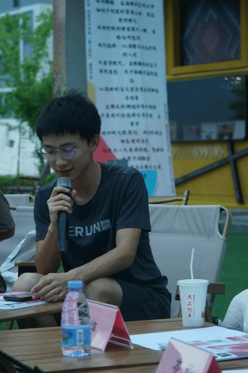 这位同学深刻地回答道:“《动物世界》我讨论的是动物,也是我们,五首诗离不开几个词语,人生,宿命,到底是一劳永逸的人生舒服还是自由闯荡的生命更具有意义,到底是宿命永远不会摆脱宿命的定论还是我们仍能够挣脱束缚,然后去不留余地地奔跑,讲述更加精彩的故事。这是我在诗中留给自己的问题,也是留给在座各位的思考。最后我想说,诗歌是最凝练的文学,既是作者想法的表达,也是读者在分享艺术中发现感悟的新空间,希望各位能在诗歌中探索到更多属于自己的世界。”动物世界不仅是描述现时代动物的生存环境,更是通过写这些与人亲近的动物去表达出社会中一类人的生存现状。