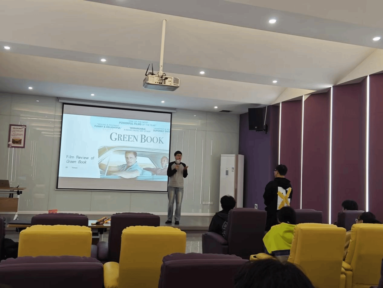 随着灯光渐暗,大屏幕亮起,电影放映正式开始。这次观影的不同之处在于,有幸邀请到了孟老师,孟老师作为特邀嘉宾,与同学们一同观影并进行实时讲解。孟老师以其深厚的电影理论基础和敏锐的洞察力,对影片中的镜头语言、人物塑造、情节构建等方面进行了细致入微的分析。他不仅带领我们挖掘了电影表面的故事线索,更深入探讨了隐藏在画面背后的导演意图、社会背景及文化寓意,让每一帧画面都充满了深意,每一句台词都饱含哲理。