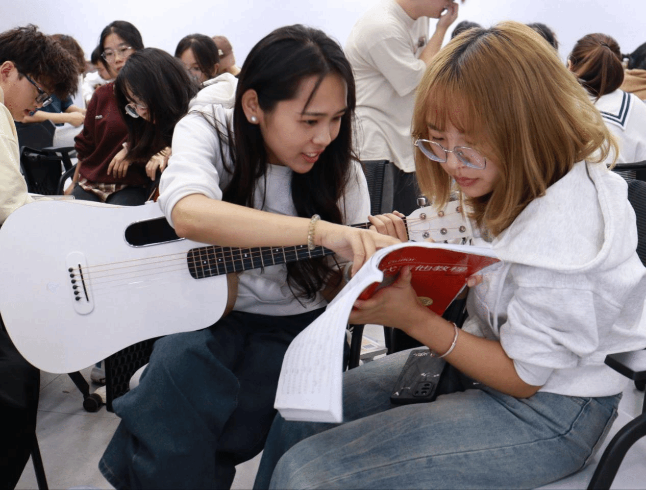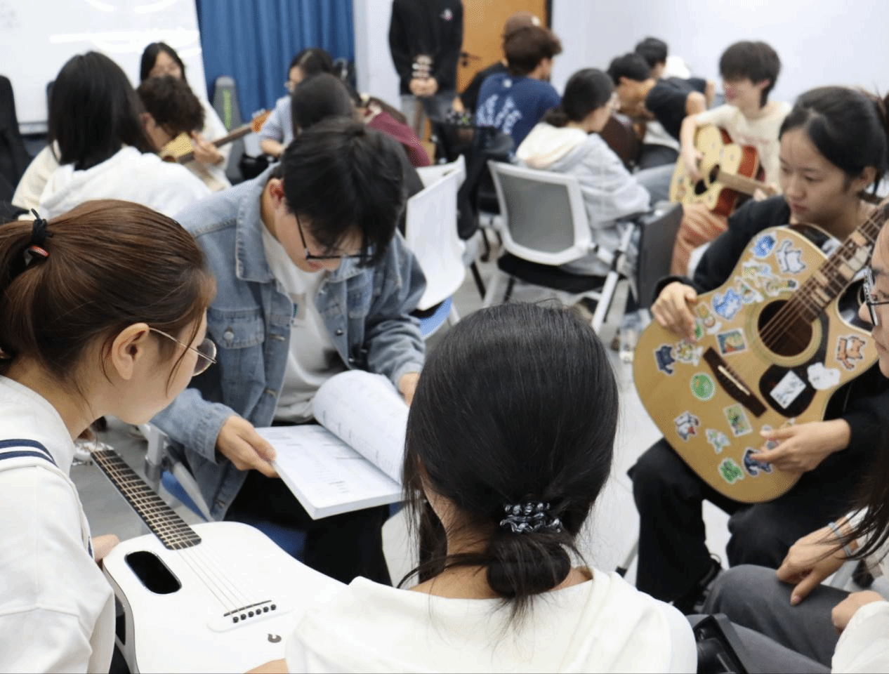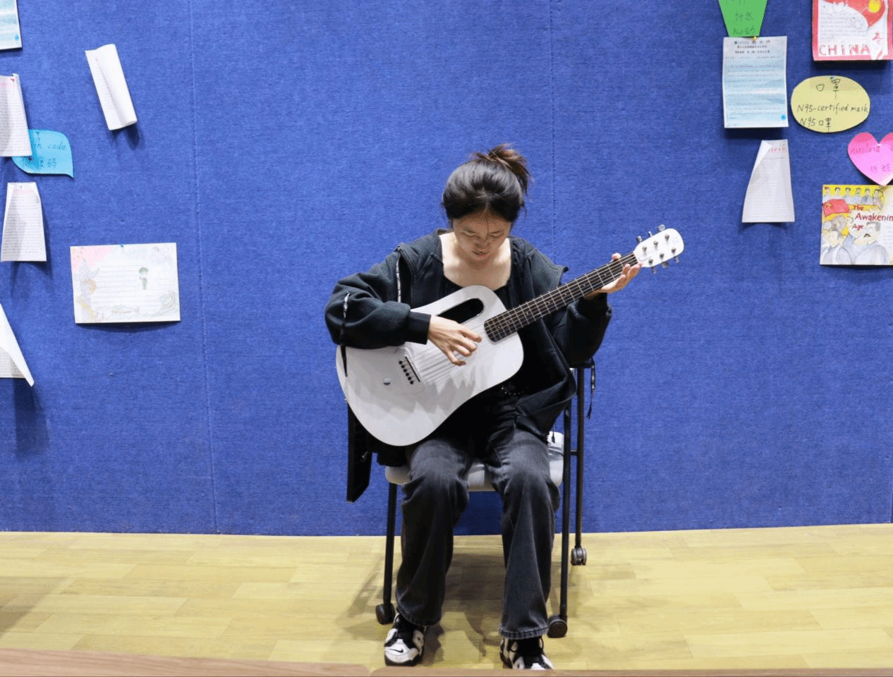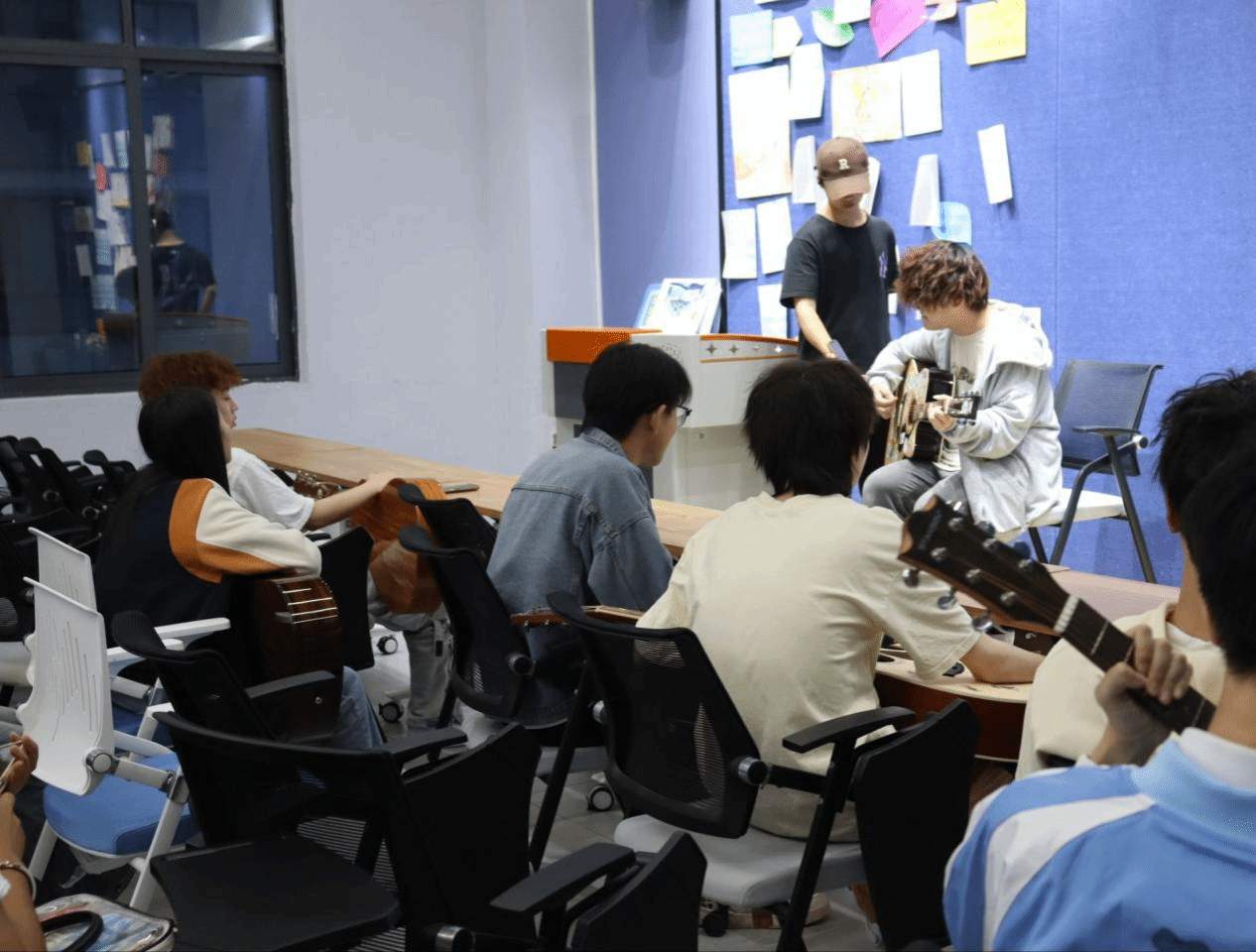 除了基本技巧的教学,教学部还向同学们介绍了进阶技巧,如交替拨弦、经济拨弦等,并鼓励他们勇于尝试,不断提升自己的演奏水平。在教学的过程中,同学们不仅学到了吉他演奏的技巧,还深刻感受到了音乐的魅力和力量。