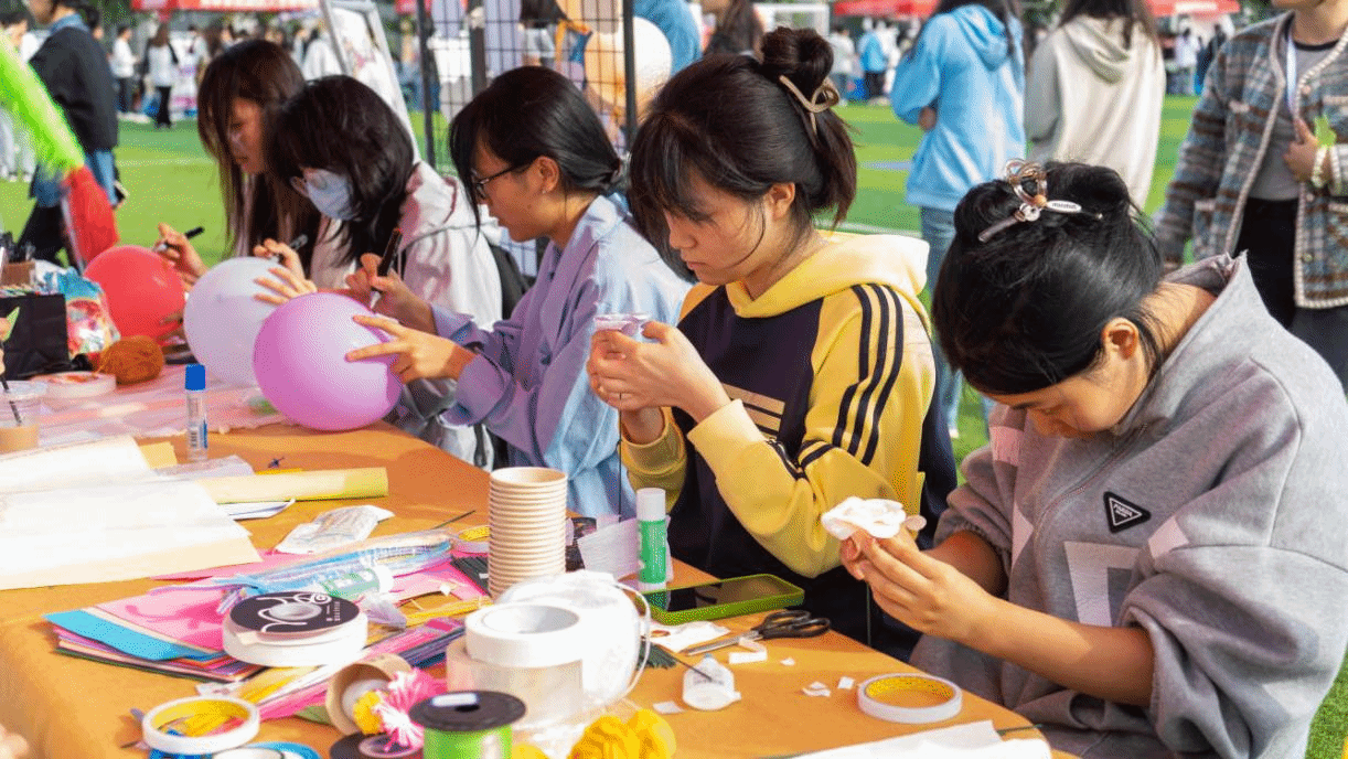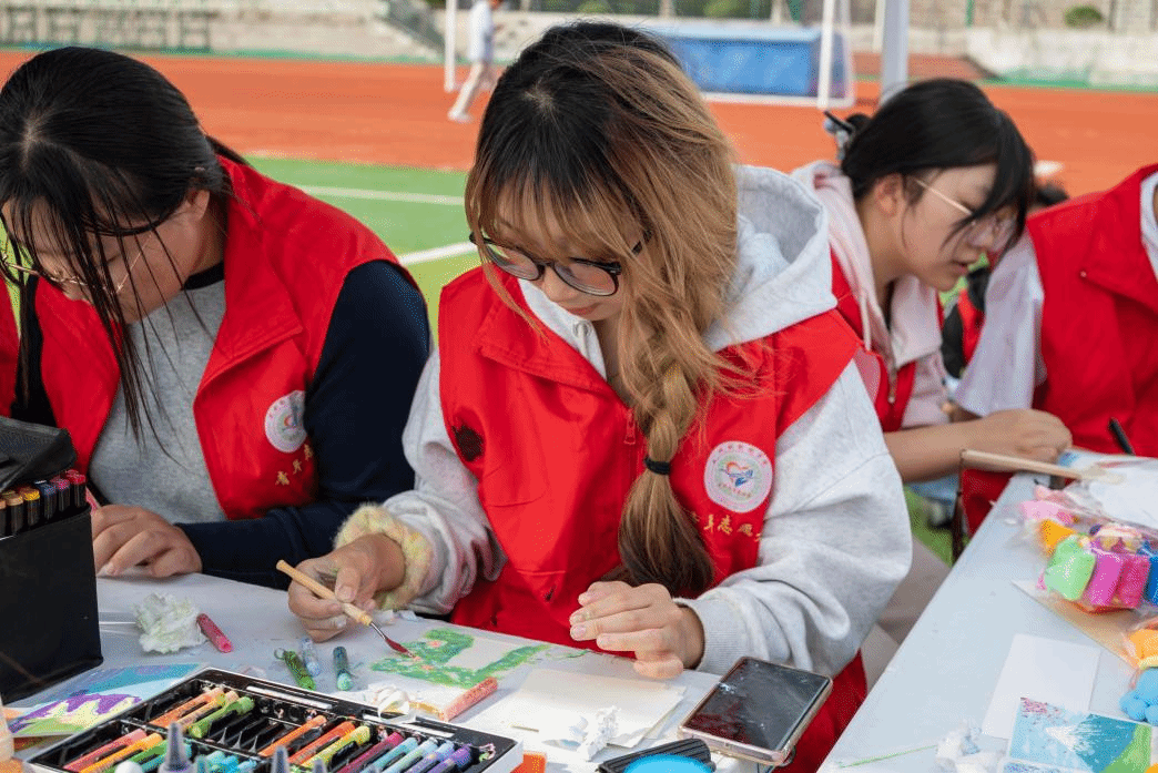 戏剧影视学院开展“Don't Emo情绪大作战”,先填写情绪调查表,了解自己属于的什么类型人格,后带着特定道具(彩色假发、特别扎眼的服装)与10名陌生同学共同完成合照,并且可以现场收获一张“拍立得”记录此时此刻勇敢的自己,将自己的勇敢瞬间张贴在“勇敢牛牛墙”上。随后可参与情绪扇的制作:将自己认为的偏见、自己很在意的情绪、内心最想表达的情绪写在情绪扇上面。通过将个人认为的偏见、在意的情绪以及最想表达的情绪写在情绪扇上,参与者能够有机会深入地审视自己的内心世界,理解并接纳自己的情绪和偏见。