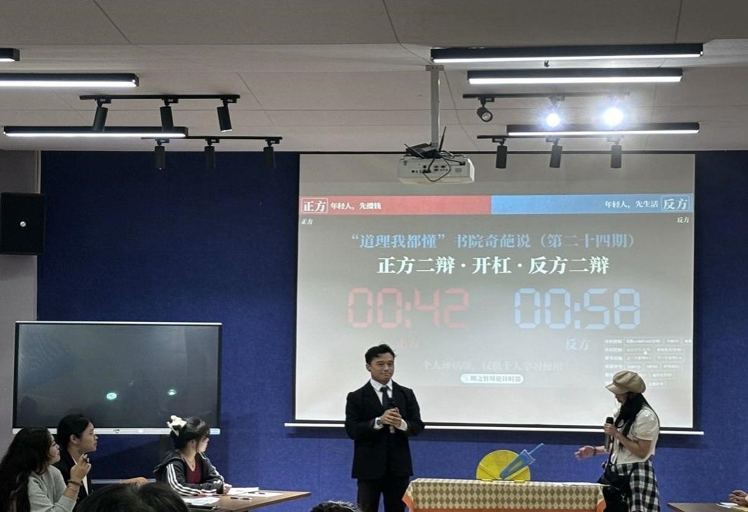 10月23日19:00,最强大嘴辩论赛社在綦河书院二号楼苍山阶梯活动室举办了一场关于“年轻人,先攒钱还是先生活?”的辩论赛。辩论双方展开了激烈的交锋,深入探讨了先攒钱还是先生活的利弊,引发了同学们对现在年轻人存在的现实选择问题的广泛关注和思考。