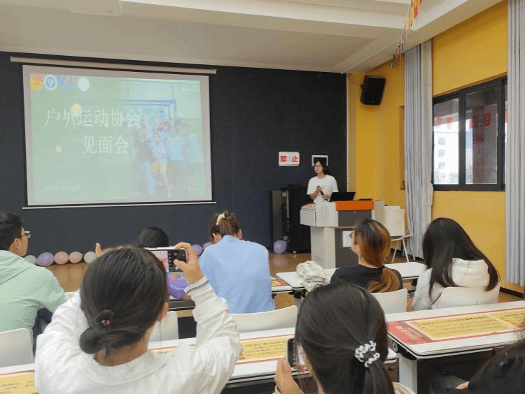 下午两点半,见面会正式开始。社长张滢丹首先对户外运动协会进行详细介绍。她提到,户外运动协会是一个致力于推广和普及户外运动,提升同学们身体素质和团队协作能力的社团。协会自成立以来定期组织徒步、飞盘、攀岩等丰富多彩的户外活动,其目的是希望让更多的同学走出教室,享受运动带来的快乐与健康,在提升社员户外运动技能和安全意识的同时,为他们提供一个释放压力、放松心情的机会。