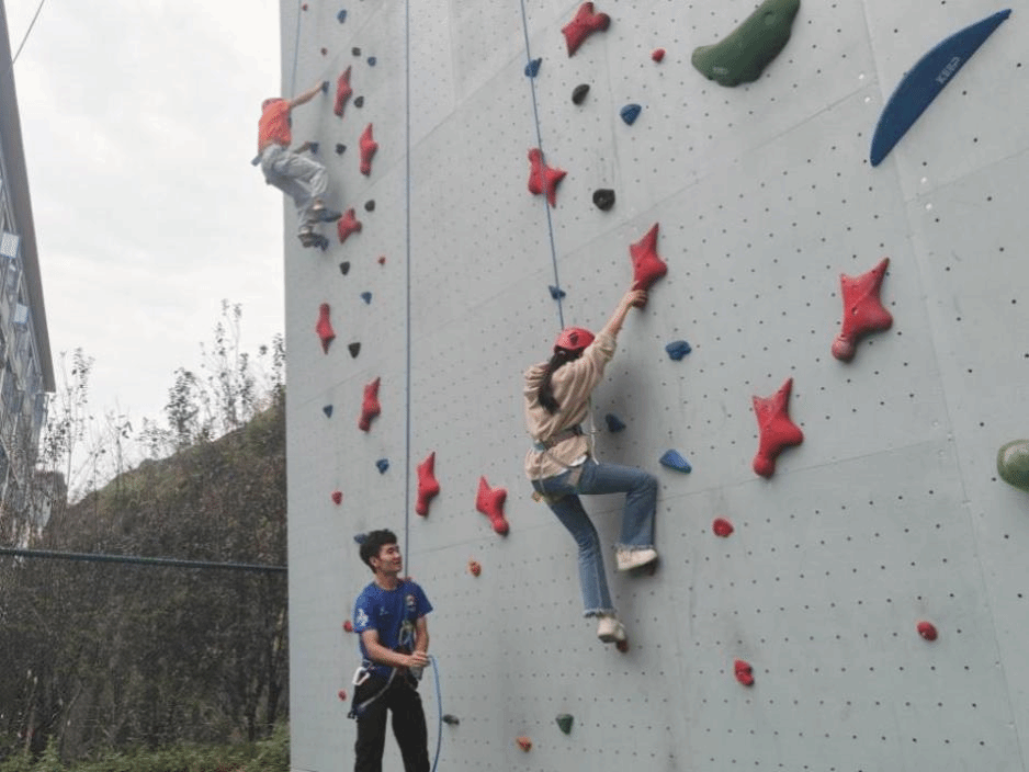 最令同学们期待的攀岩体验环节终于到来。在协会社长的指导下,同学们穿戴好安全装备,满怀期待地走向攀岩墙。他们或小心翼翼地寻找着落脚点,或勇敢地迈出大步,向着更高的目标进发。每一次成功登顶,都伴随着同学们的欢呼与掌声;每一次失败与挫折,也激励着大家不断尝试,永不放弃。