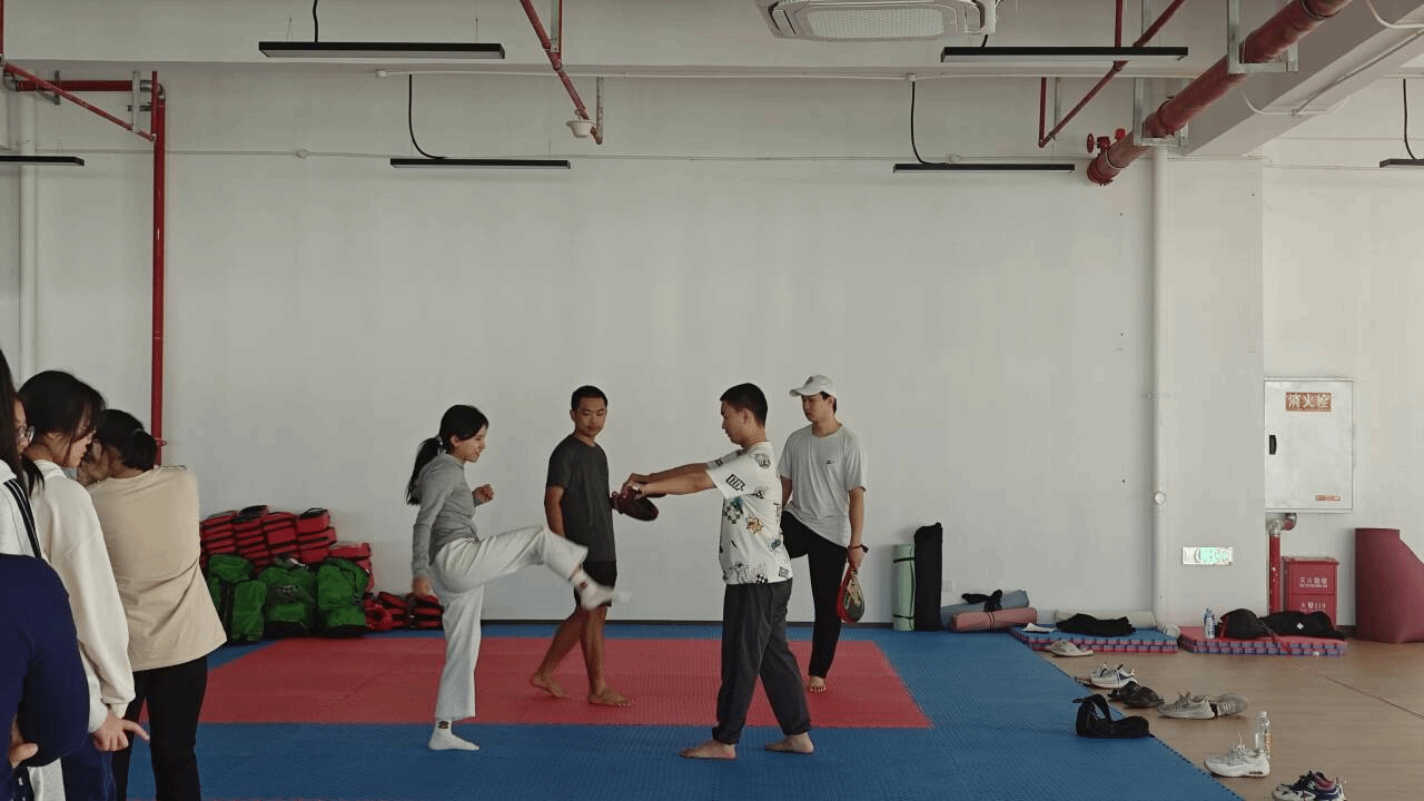 此次活动主要是求精不求多,在三位教学老师的带领下,每位同学都会亲自上手去体验并且去感受跆拳道的乐趣,活动氛围特别浓厚,学习的同学们不耻下问以及老师们的尽职尽责将活动推向了最高潮。每位同学都可以感受不同腿法的力度,在忙碌的大学生活中感受到放松。不同的腿法对于训练者带来的感受也有所不同,出现的每一个错误的动作,老师都会及时纠正,同学们也会互相监督,同学们通过这次活动也会将及时纠正错误的行为带到生活中和学习当中去。