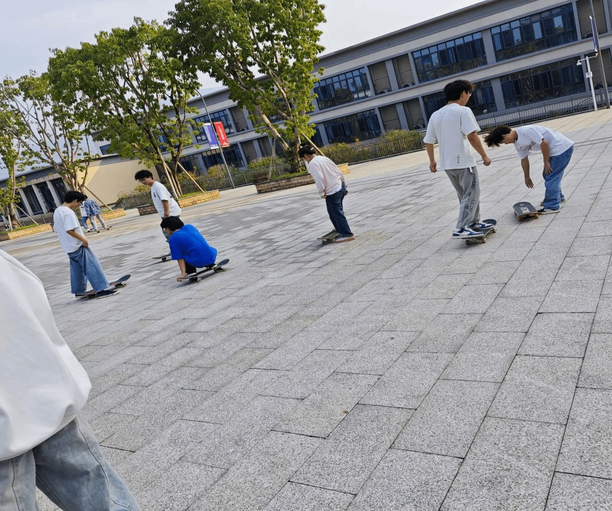 随着不断地练习,同学们的进步越来越大。有的同学已经能够轻松地滑出一段距离,还能做出一些简单的转弯动作;有的同学则在尝试着加速,感受风在耳边呼啸的快感。操场上充满了欢声笑语和滑板轮子滚动的声音,仿佛奏响了一曲青春的乐章。