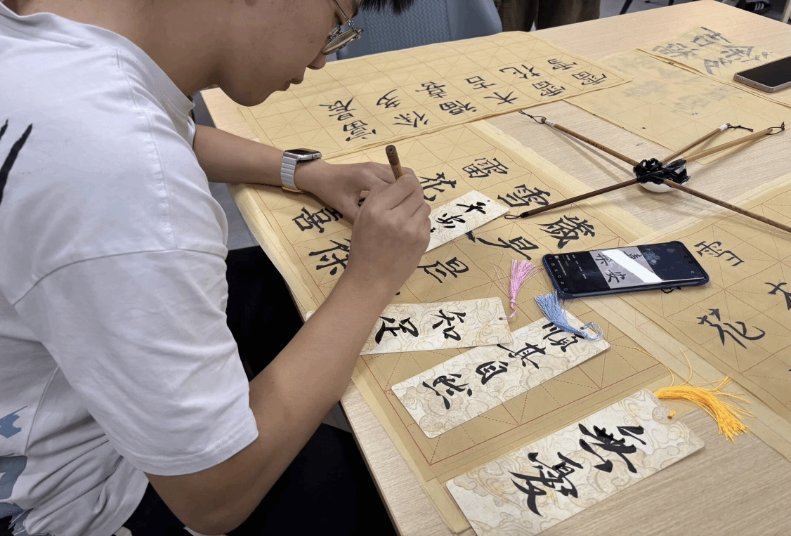 本次书法小课堂“欲知且试,所念所得”,为忙碌的同学们打造了一个放松身心的空间。课堂上,主讲老师以听讲与练习相结合的方式,引导大家体验传统书法文化韵味。青花墨字书画社以此活动为载体,成功传播了书法艺术的独特魅力。通过此次活动,同学们得以深入领略书法之美,同时青花墨字书画社也为传承书法风采、打造魅力校园贡献了一份力量。