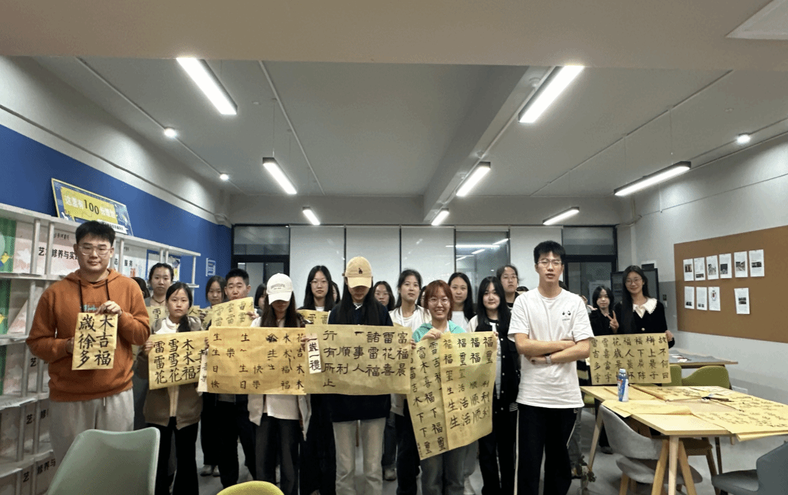 随着活动的圆满落幕,师生们欢聚一堂,手持自己的书法作品进行合影留念,定格下了这难忘的瞬间。