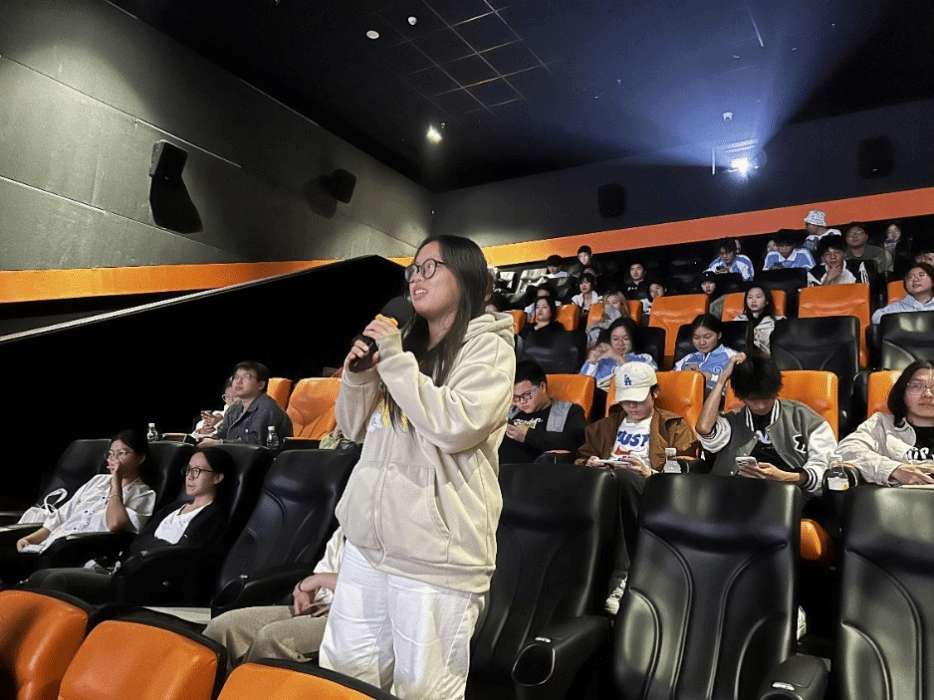活动当日,影城内人声鼎沸,大家有序地排队入场,眼神中满是对即将放映的《扬名立万》的期待。当灯光渐次熄灭,银幕上的光影开始交织,一个充满未知与惊喜的剧情世界悄然展开。同学们的目光紧紧地锁住银幕,有的微微前倾身体,像是害怕错过任何一个画面;有的嘴巴微张,被紧张的剧情所吸引。