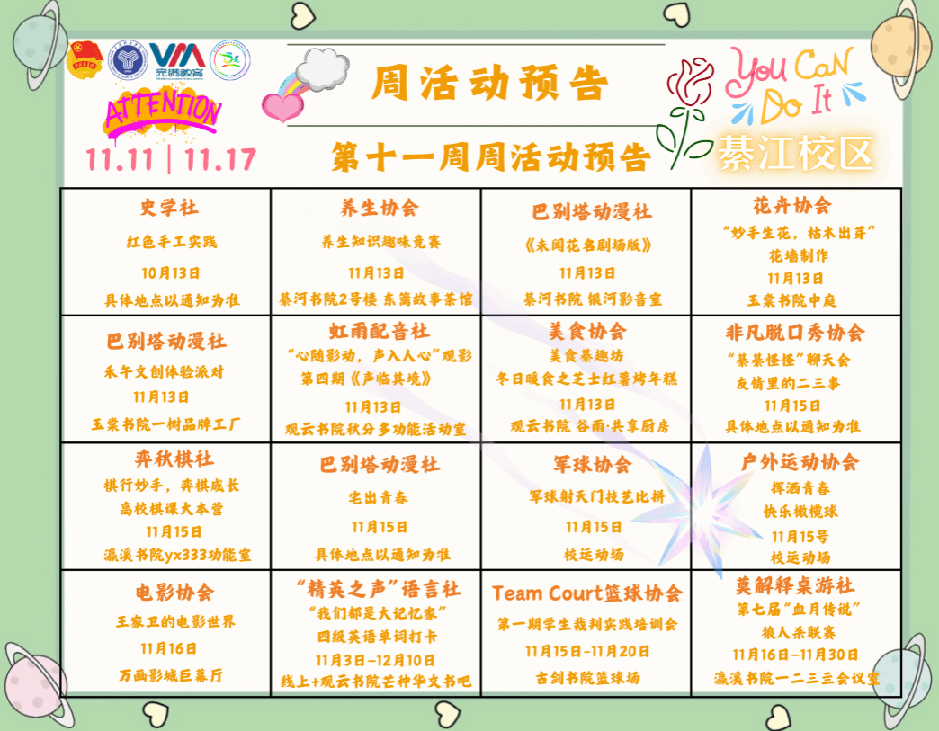 精彩活动持续进行中,下周邀请各位王子、公主们一起体验愉快的社团时光!