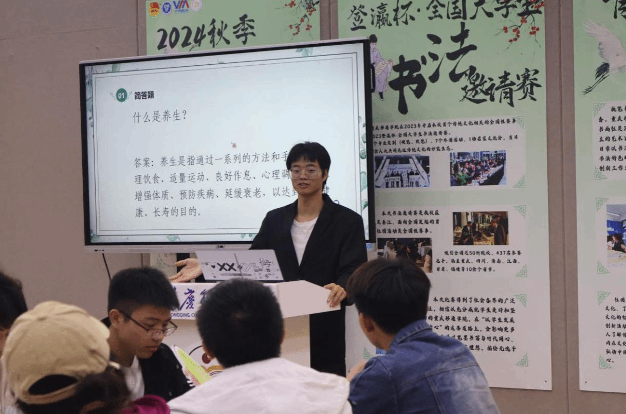 竞赛题目设计精巧,内容广泛,涵盖了饮食养生、运动养生、心理养生等多个方面,旨在引导同学们树立正确的养生观念,深入了解健康生活方式的重要性。选手们在比赛中积极思考,踊跃回答,展现出了对健康生活的热爱和追求。他们的精彩表现赢得了现场观众的阵阵掌声和欢呼声。