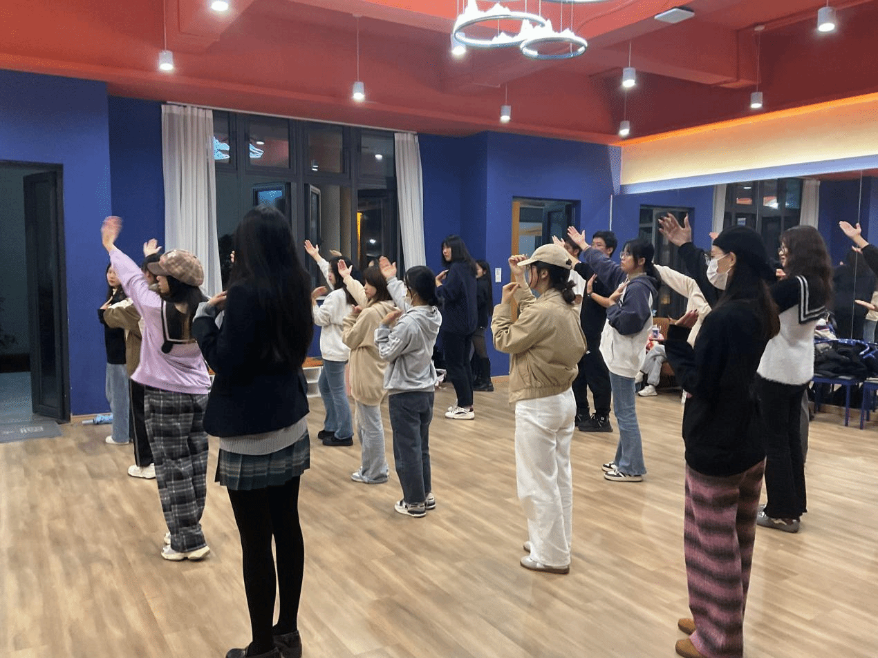 在活动进行的过程中,同学们的激情逐渐澎湃了起来,许多同学从开始的腼腆逐渐变得有活力了起来,有部分同学还主动向教学小老师请教了舞蹈动作,使得整个活动进行得十分顺利。
