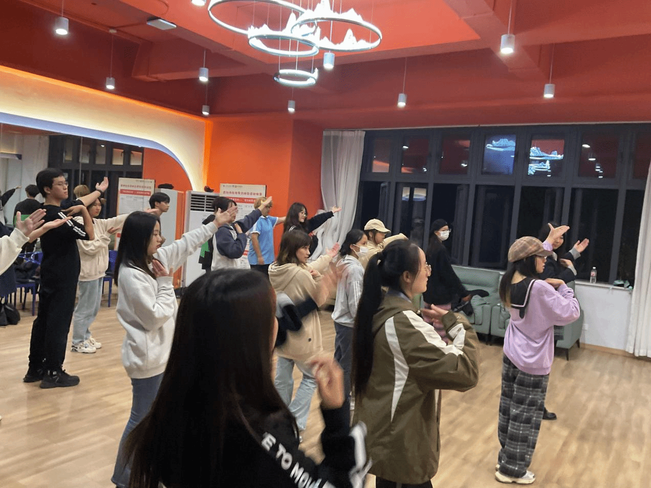2024年11月8日,巴别塔动漫社开展的《“宅”出青春》第四期学习课于古剑书院承影形体室圆满结束。这次活动的主要目的是希望通过学习宅舞能丰富本校在校大学生的课余生活,让渴望跳舞却没有舞蹈基础的同学也能参与进来,同时缓解学生在紧张的学习生洁中带来的精神压力,通过跳舞的方式放松身心。