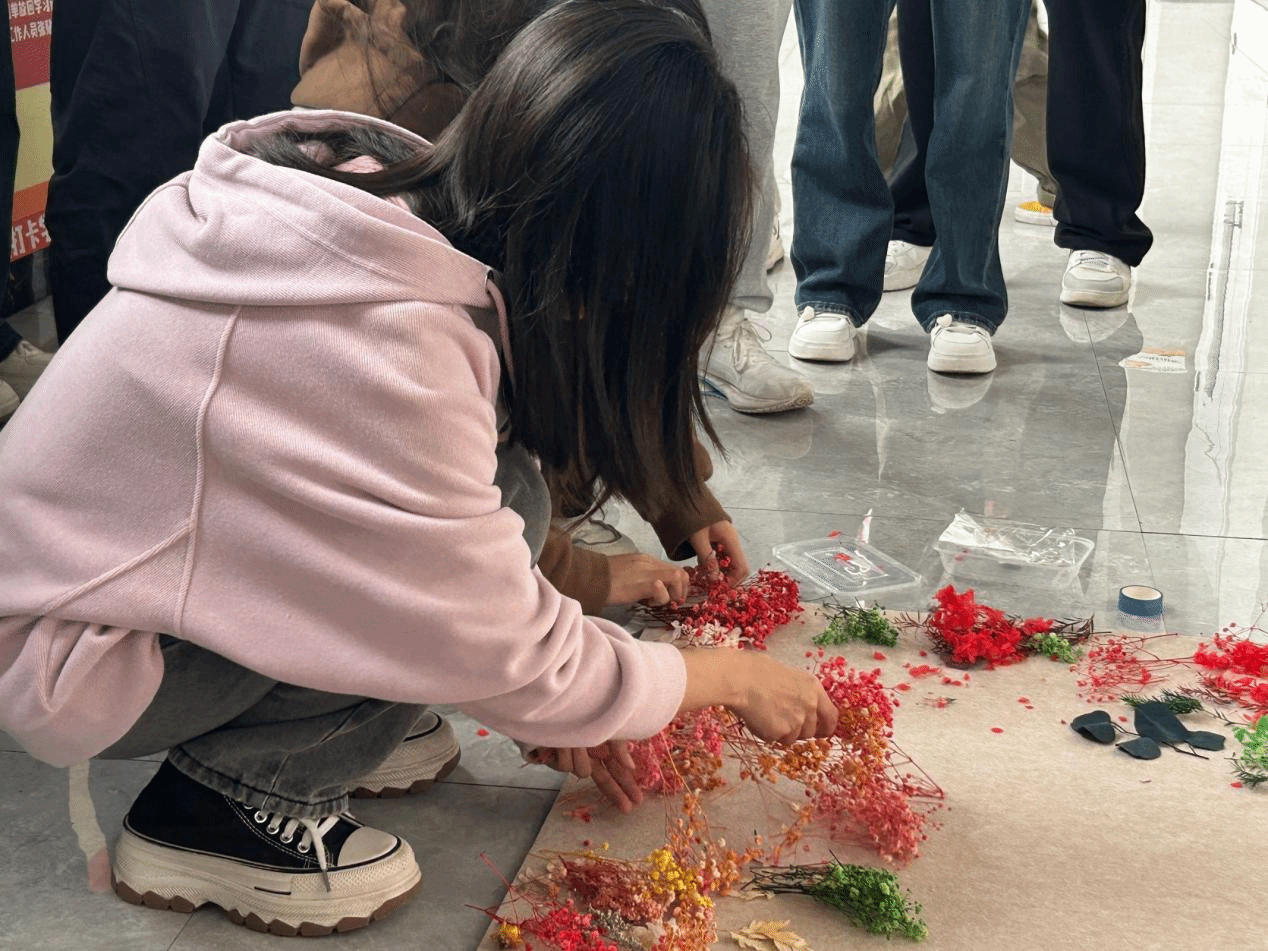 每位参与者都沉浸于个人的艺术天地,用灵巧的双手,拼贴着多彩干花与手工胶,构思精巧,细心粘贴。每一瓣花瓣的轻舞,每一抹绿叶的跃动,皆在他们的匠心独运下,焕发出全新的生命力与深远的意义。