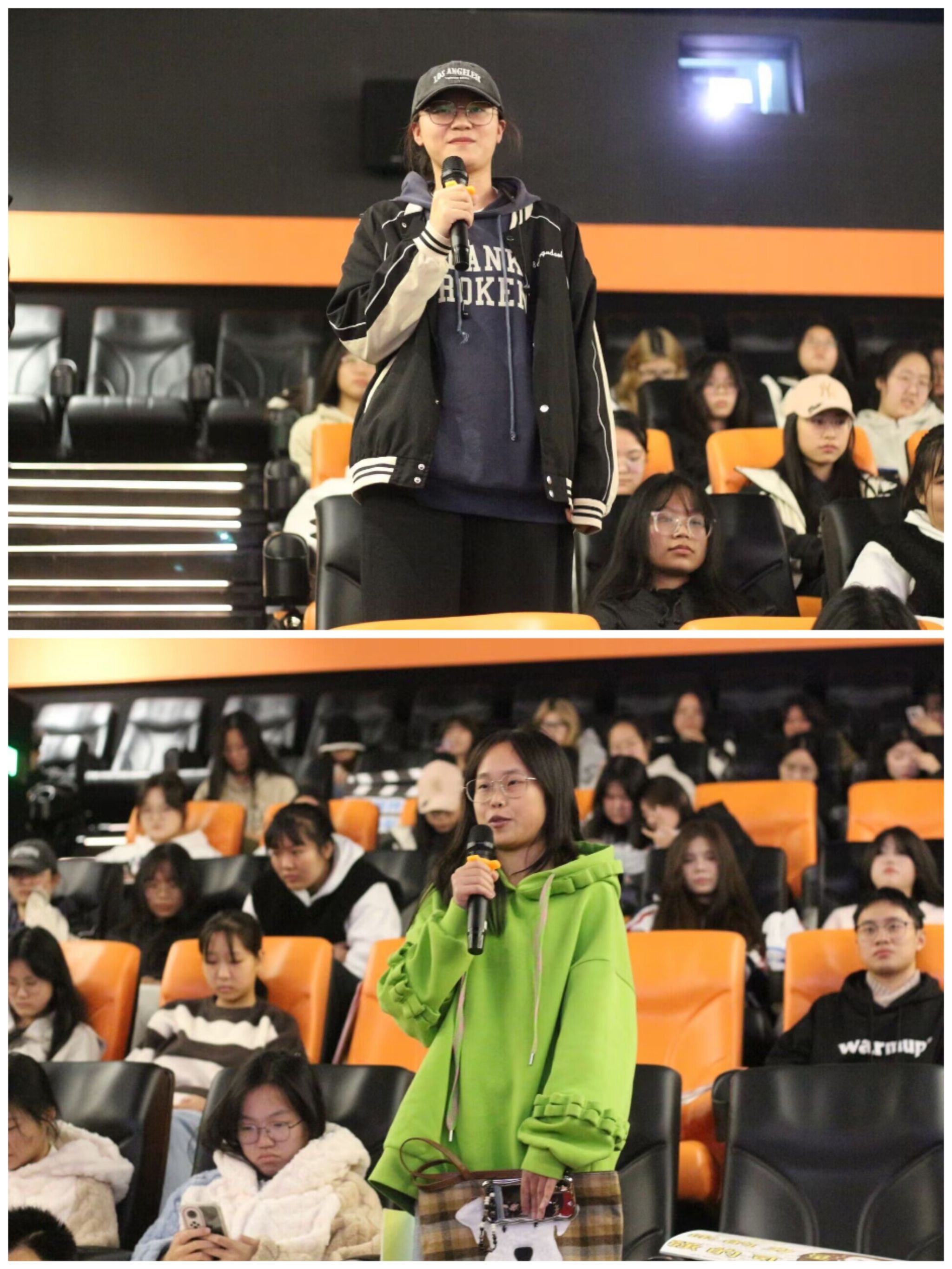 随着电影的片尾字幕滚动完毕,放映厅的灯光渐亮,同学们期待已久的观影发言环节拉开了帷幕。