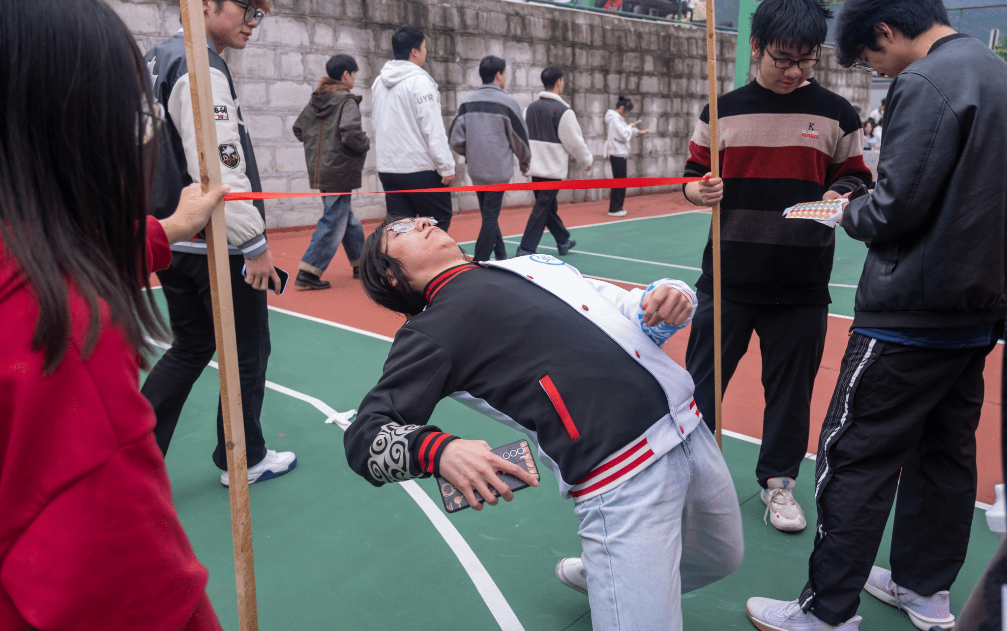 活动当日,篮球场内摊位星罗棋布,现场人潮涌动,趣味运动新玩法,动静结合,脑力与体力双PK。挑战赛的号角正式吹响。本次大赛涵盖了学术、艺术、体育、科技等多个领域,每一个摊位都拿出了自己的看家本领,每一位参与同学都信心十足,誓要在这场“百团大战”中脱颖而出,将自己的名字留在TOP牛人榜上。各社团精心布置摊位,结合社团特色设计了多个精彩活动,“移綦”长跑社的“趣跑”挑战,解锁多重姿势,考验挑战者的平衡力、反应力;最强大嘴辩论社“抽卡思辨”,砥砺思想之锋,共赴语言之约;非凡脱口秀协会的绕口令挑战,不同的“乌龙”状况频起,谁才是绕口令之王?此外,还有趣味游戏、烧脑问答等项目,不仅考验了选手们的语言表达能力和创造力,更是完成了一场心灵与智慧的碰撞。人均挑战项目到达15个及以上。摸高挑战成为最热门挑战,女生TOP1,2.3m,男生TOP1,3.6m!整个活动活动现场热闹非凡,充满激情与活力。
