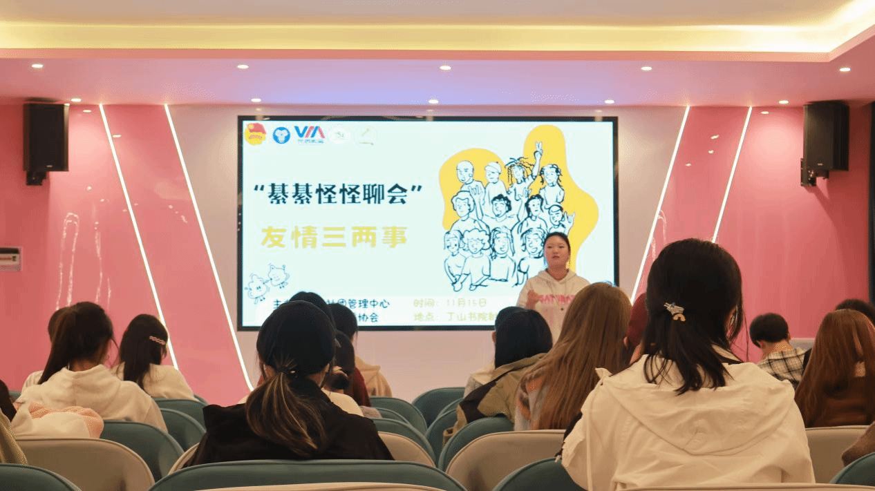 为了给同学们搭建一个互相交流的平台去分享他们友情故事,增进对友情内涵的理解,让大家重新审视身边的朋友,回忆那些温暖的瞬间,在快节奏的学习生活中重拾情感的温度。非凡脱口秀协会于2024年11月15日在丁山书院射手座·多功能空间开展了“綦綦怪怪”聊天会——“友情两三事”的活动。