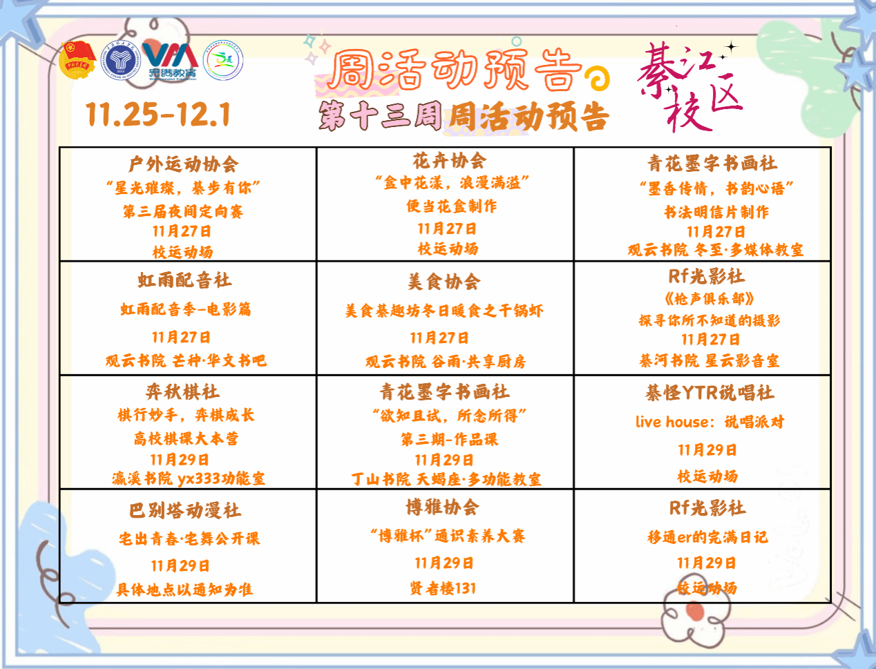精彩活动持续进行中,下周邀请各位王子、公主们一起体验愉快的社团时光!