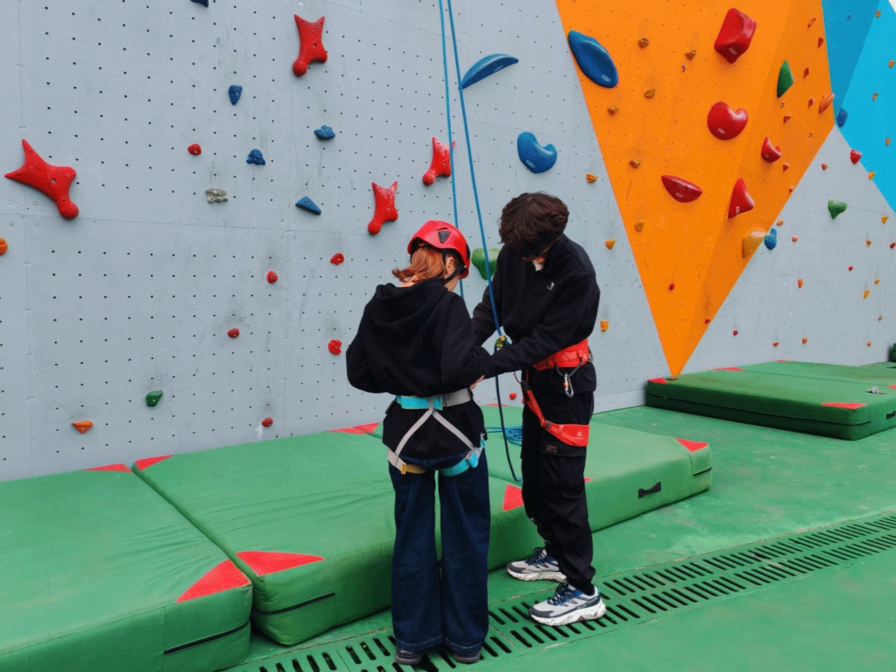 正式攀岩体验前,工作人员为同学们详细讲解攀岩知识并开展安全教育。主要介绍攀岩基本技巧、装备使用方法以及各类安全注意事项,以确保每位参与者既能尽情享受攀岩乐趣,又能够保障自身安全。