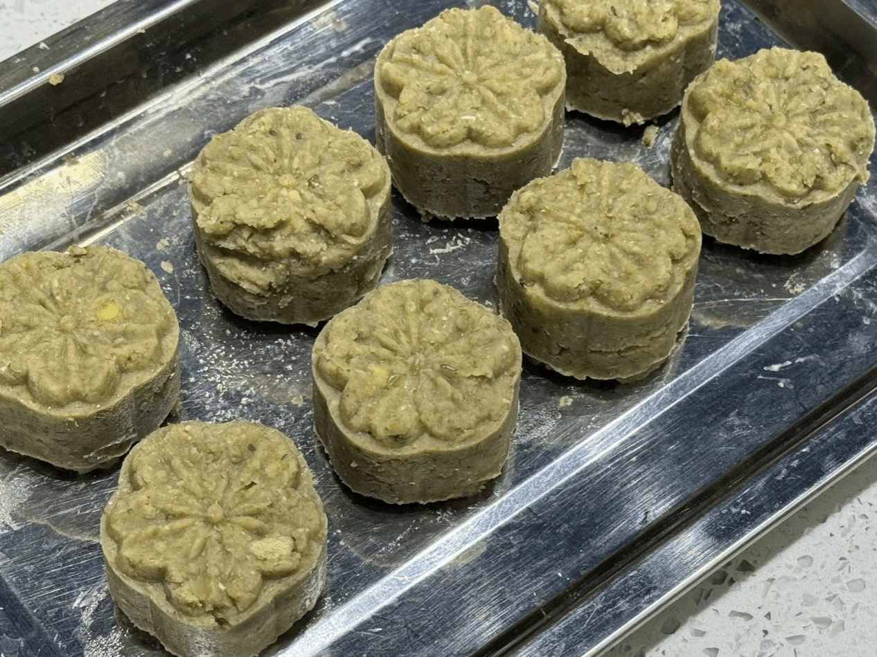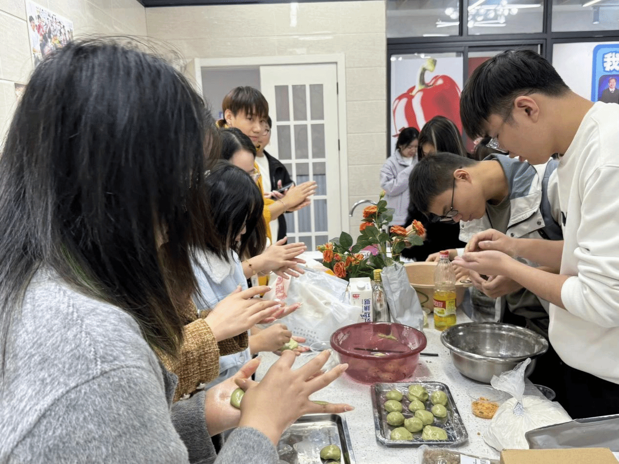 与此同时,现场的美食区在积极筹备同学们书法下展现的美食。有白居易所作诗中的“寒食青团店,春低杨柳枝。酒香留客在,莺语和人诗“的青团,它以其软糯香甜、色彩鲜艳的特点成为了本次活动的明星美食,吸引着同学们积极参与青团的制作,把属于自己的书法笔下的美食创造出来。也有同学们将书法的独特韵味变为手下的似“玉绿玲珑含翠影,糕香暗度入心房”的绿豆糕。绿豆糕以其软糯的口感和形似碧玉的外表赢得了大家的的喜爱。看着笔下的绿豆糕化虚为实,同学们露出了难以言表的喜悦。