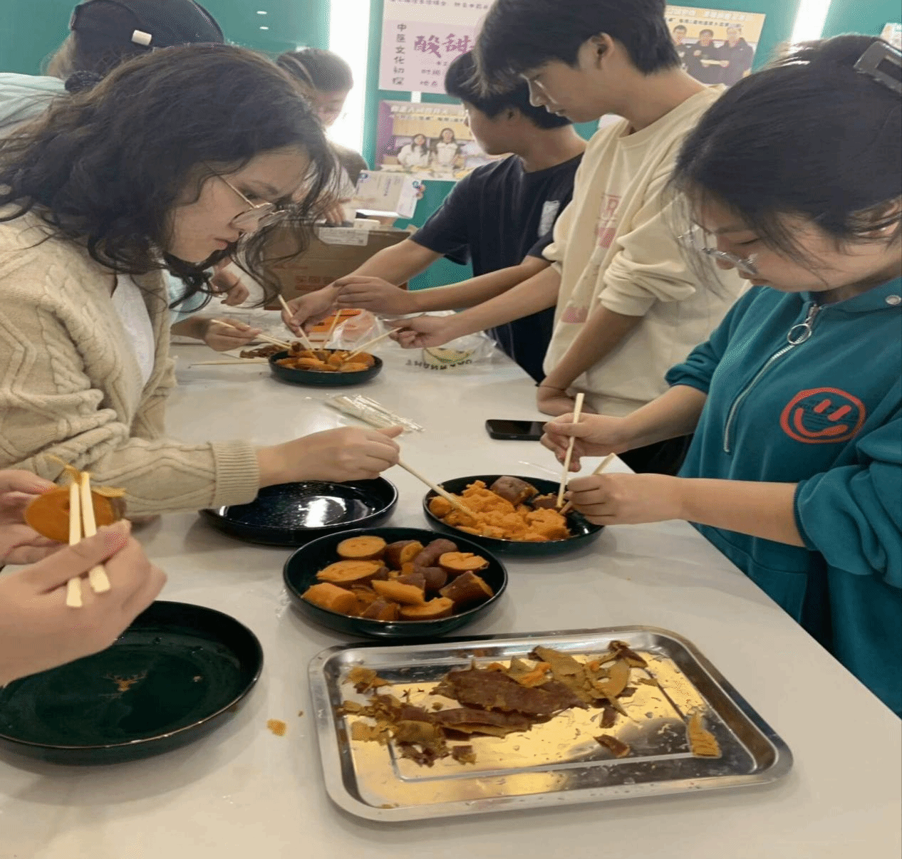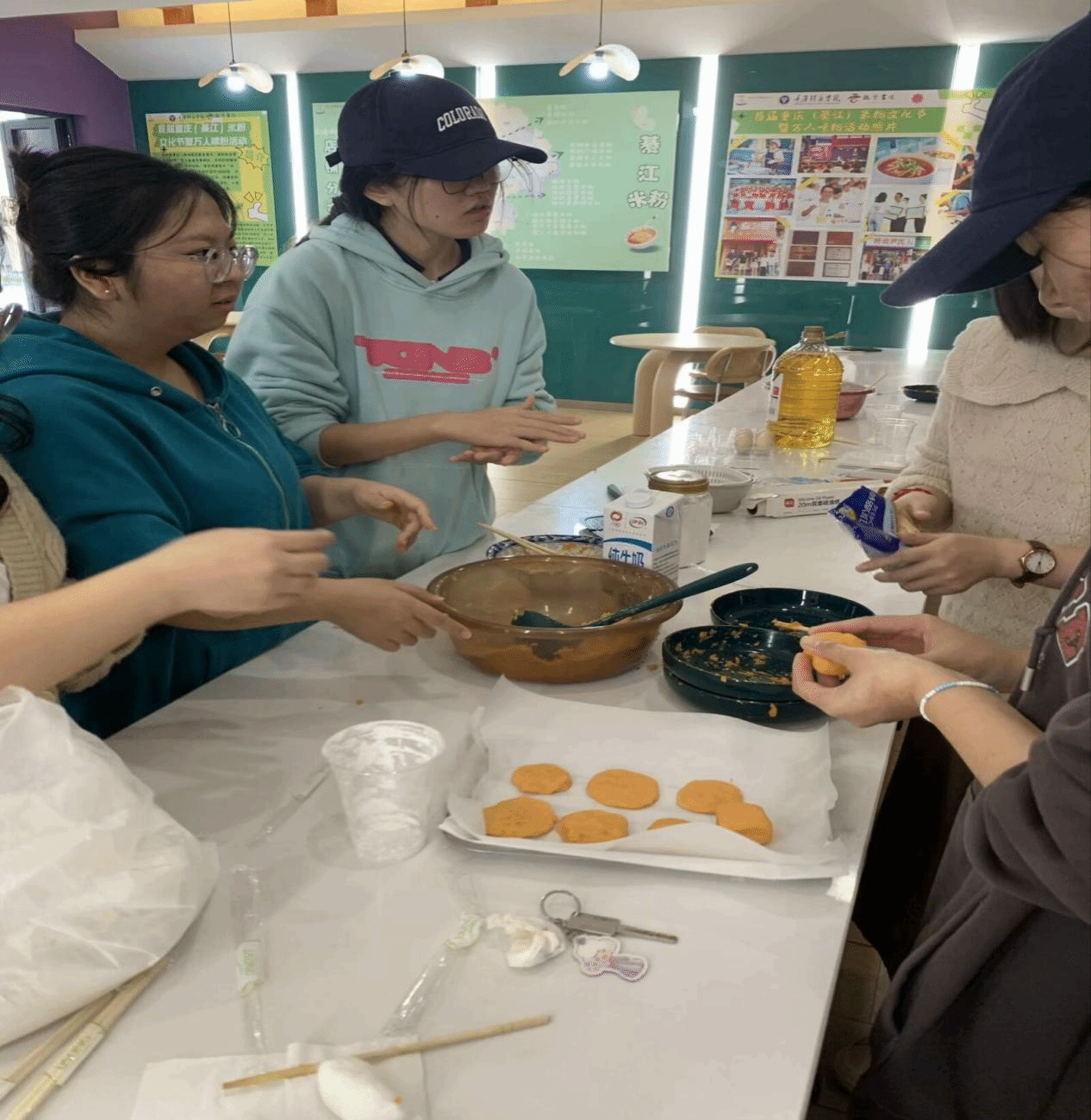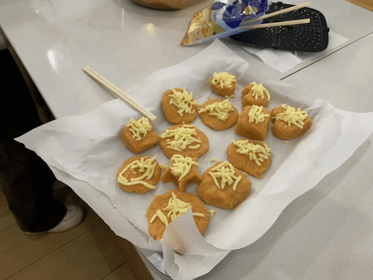 随着烤箱温度的升高,芝士逐渐融化,散发出诱人的香气,弥漫在整个活动场地。当烤好的芝士红薯烤年糕新鲜出炉时,金黄的色泽令人垂涎欲滴。同学们迫不及待地品尝自己亲手制作的美食,香甜的红薯、拉丝的芝士与 Q 弹的年糕在口中完美融合,丰富的口感让大家赞不绝口。有的同学表示:“这是我第一次尝试制作芝士红薯烤年糕,没想到这么成功,味道太棒了!” 还有的同学说:“通过这次活动,不仅学会了新的美食制作技能,还和同学们一起度过了一段非常愉快的时光。”