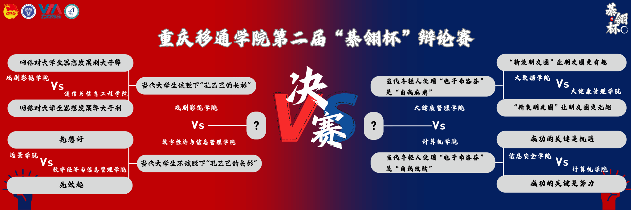 明同异之处,察明实之理。本届“綦翎杯”辩论赛复赛辩题紧扣时政热点,意在帮助移通学子提升思维能力、锻炼批判性思维与逻辑思维,为国家人才强国赋能。评委们根据辩手在辩论场上呈现的内容深度广度、辩论技巧能力、语言组织表达能力以及团队协作能力等要素进行了严谨公正的考评。4支辩论队,16位辩手,历过激烈比拼,戏剧影视学院代表队和大健康管理学院代表队两支队伍脱颖而出晋级总决赛。