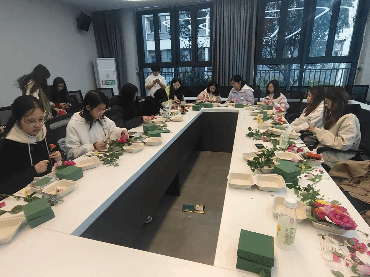 随着时代的发展生活水平的提高,花卉不再单单作为一种观赏品,它无形之中融入了人们的生活。为了让移通学子更好的通过实践了解花卉知识及花卉的魅力,丰富移通学子的课余生活,激发大家对花卉艺术的热爱和兴趣。花卉协会于2024年11月27日在玉棠书院地心会议室开展了盒中花漾,浪漫满溢便当花盒制作活动。