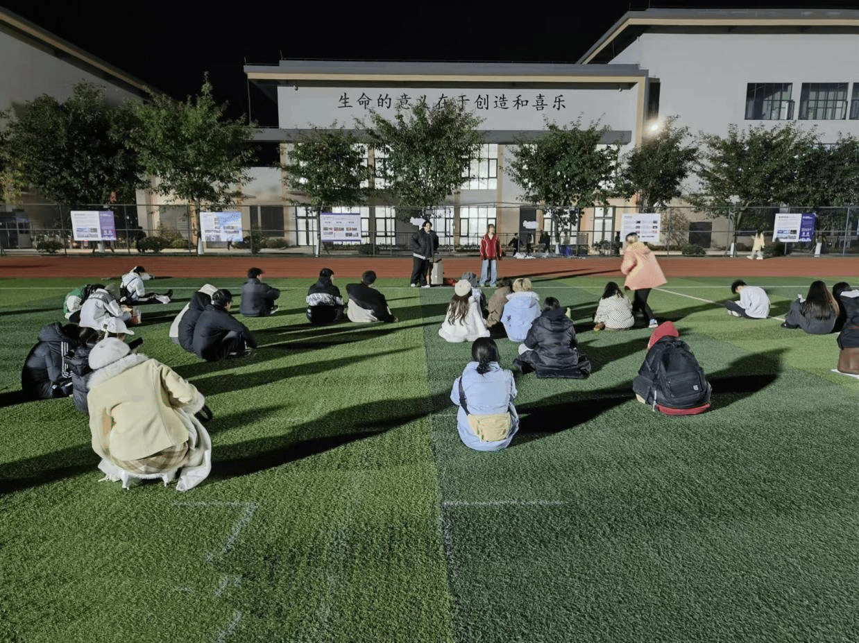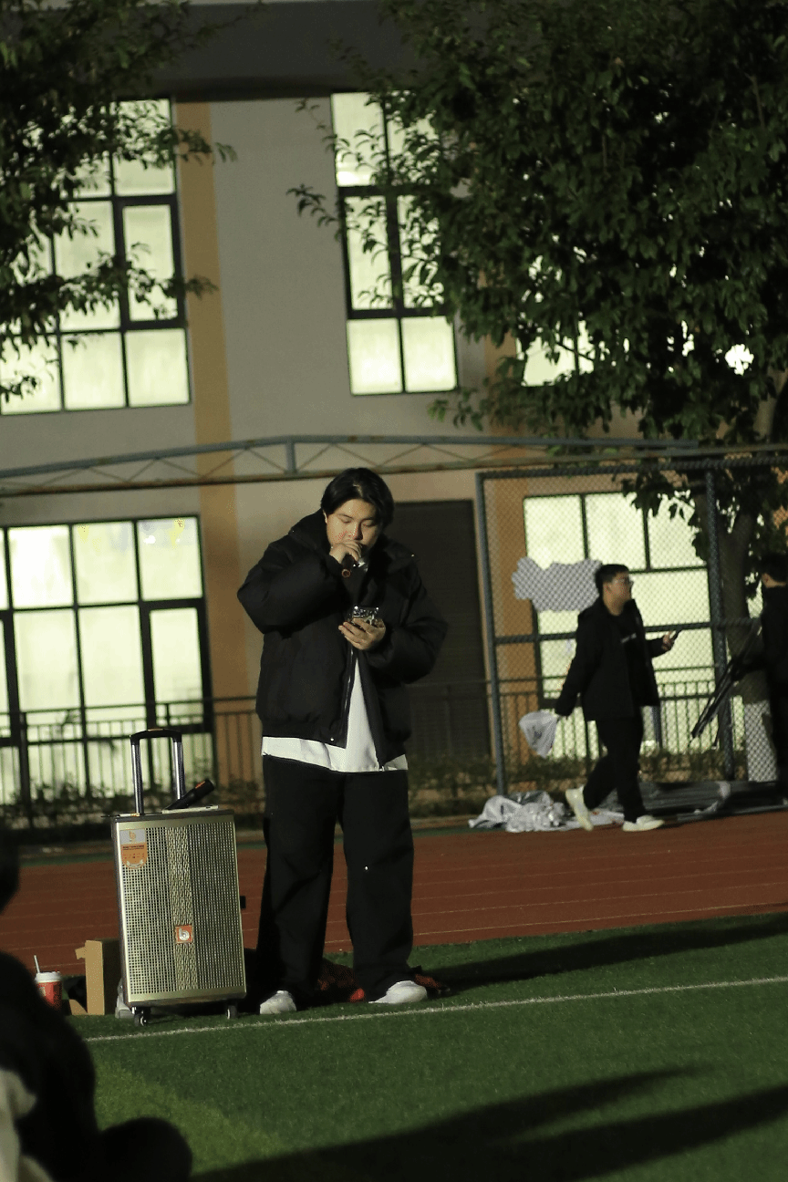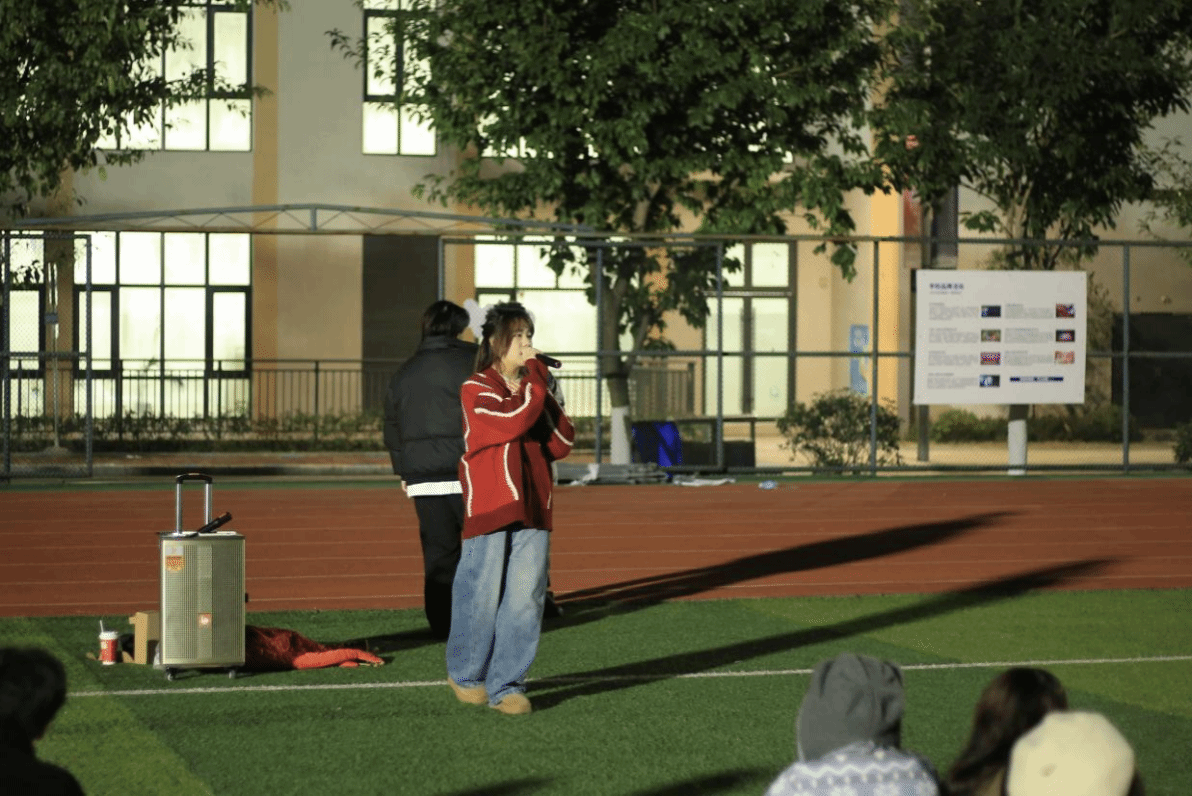 活动现场,说唱文化爱好者们相聚在夜晚学校大操场,一齐欣赏说唱音乐所带来的独特魅力。活动以表演者自行上场演唱自己喜爱的说唱音乐的形式开展,用表演的形式,展现独特的说唱文化,活动现场音乐氛围良好,参与者反响剧烈,观众热情高涨。