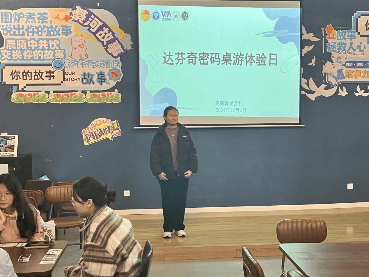 为了锻炼同学们的个人逻辑推理能力、策略规划与应变能力以及团队协作能力,同时推动桌游文化在我校群体中的普及与发展。莫解释桌游社于2024年12月4日,在綦河书院东篱·故事茶馆开展了“达芬奇密码”桌游体验活动。