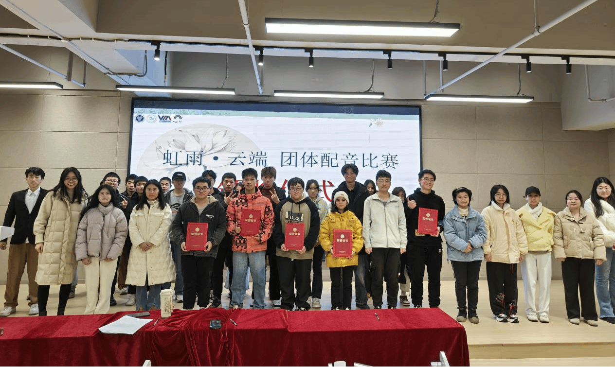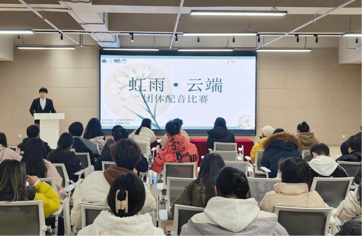 为迸发潜藏的创意火花,挣脱思维的枷锁,虹雨配音社于12月11日,在南州食堂5楼完满教育综合服务中心路演中心报告厅拉开了“虹雨•云端”团体配音大赛的帷幕。比赛的举办吸引了众多怀揣梦想与激情的配音爱好者前来参与。他们齐聚一堂,共同为观众呈现了一场精彩纷呈的配音对决。