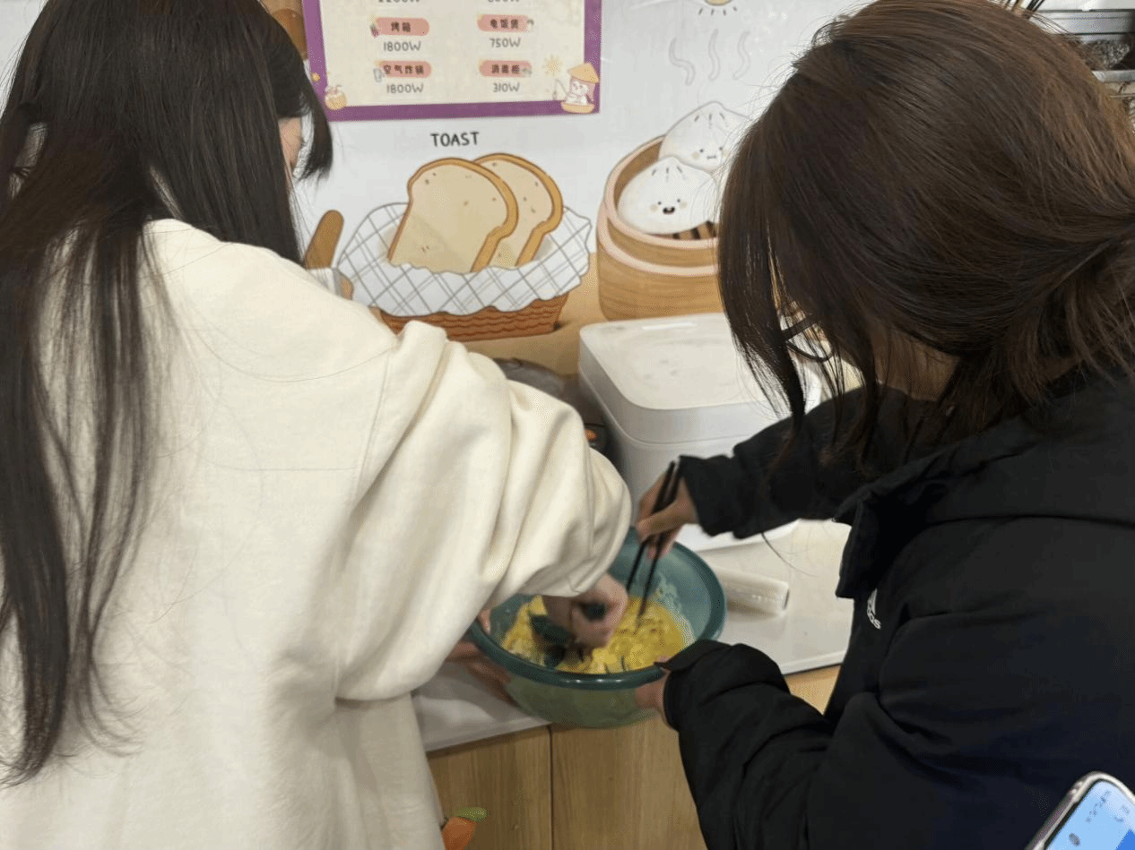 活动伊始,同学们的眼眸中满是对美食的热忱与憧憬,仿佛熠熠生辉的星辰,迫不及待地想要一展身手。在美食协会成员专业且耐心的指导下,大家聚焦传统麻薯的制作工艺,却不拘泥于常规,大胆推陈出新,经过尝试和改良,终于制作出了口感独特、外形诱人的空心大麻薯。