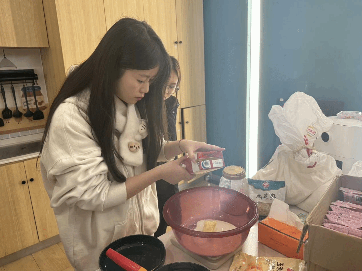 在寒冷的冬日,为了给同学们营造温馨惬意的休闲时光,让大家在繁忙的学业中寻得心灵的慰藉、舒缓身心的压力。美食协会于2024年12月11日在观云书院谷雨·共享厨房开展了“美食綦趣坊——点亮空心,校园麻薯”活动。弘扬中华美食传统文化的同时,让同学们进行交流和培养生活技能,搭建起同学们交流情感与提升生活技能的桥梁。