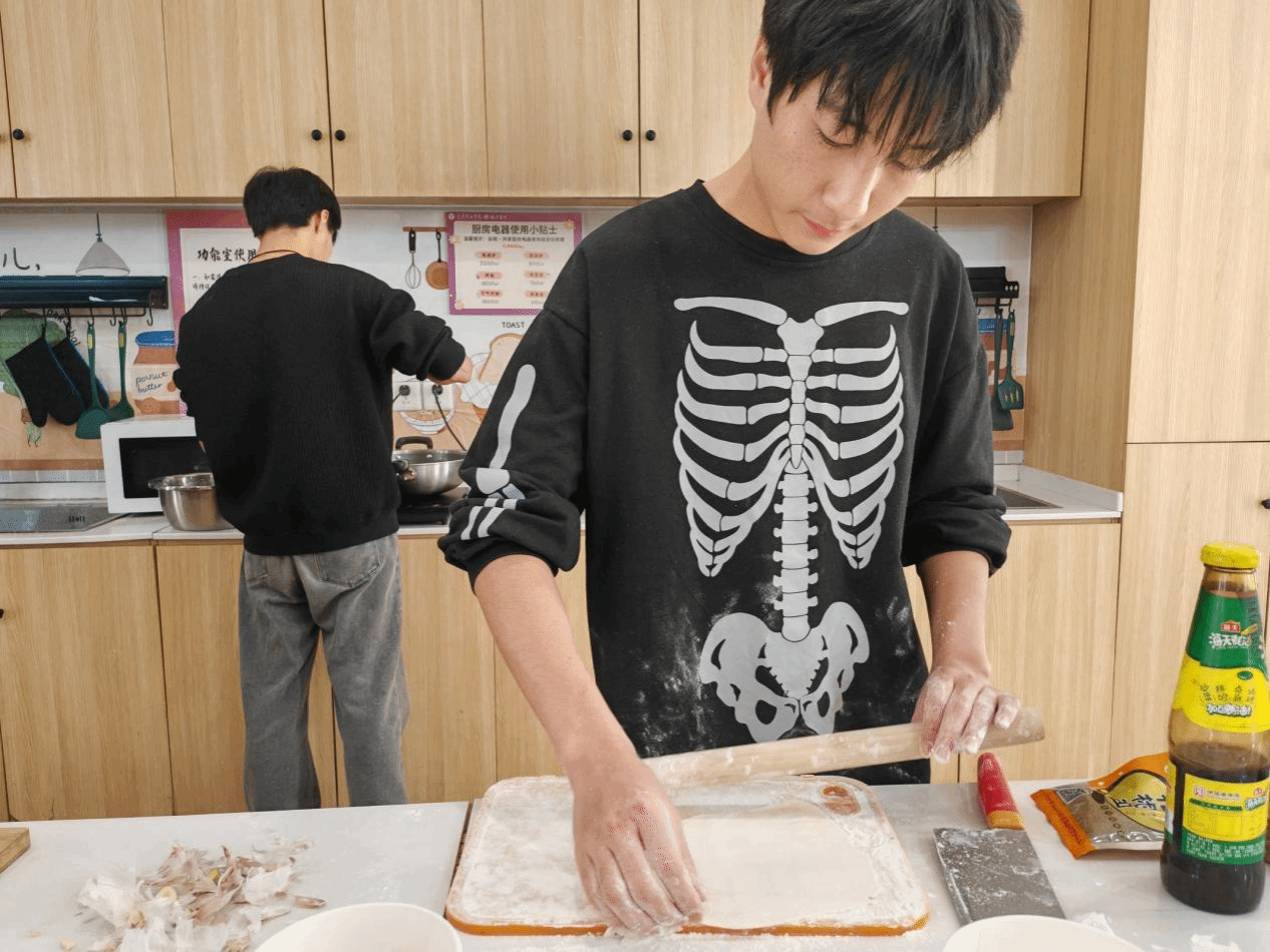 12月18日由美食协会组织的美食綦趣坊——刀削面香飘校园,共赏中华美食文化之刀削面制作活动在观云书院谷雨·共享厨房内开展,吸引了众多美食爱好者踊跃参与,现场气氛热烈非凡。本次活动旨在弘扬中华传统美食文化,丰富同学们的课余生活,让大家亲身体验传统面食制作的独特魅力。
