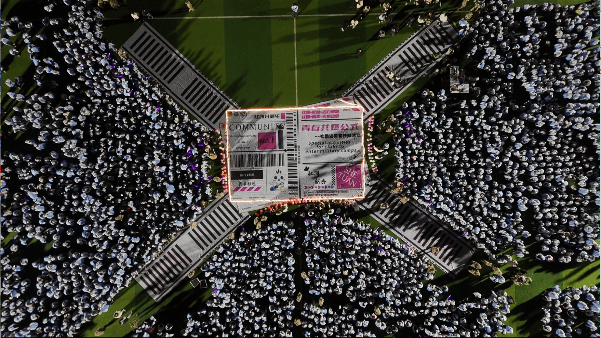 有迹可循的新生力量定格每一帧发光的青春,专属2024级学生的仪式感如约而至。2025年3月5日晚,“青春共燃公式——社团进军营特别活动”在校足球场燃情上演,本次活动与5000名大一新生共同演绎了“社团+军营=活力满满”的热血方程式,以音乐、舞蹈与热爱为军训注入“潮生”力量。