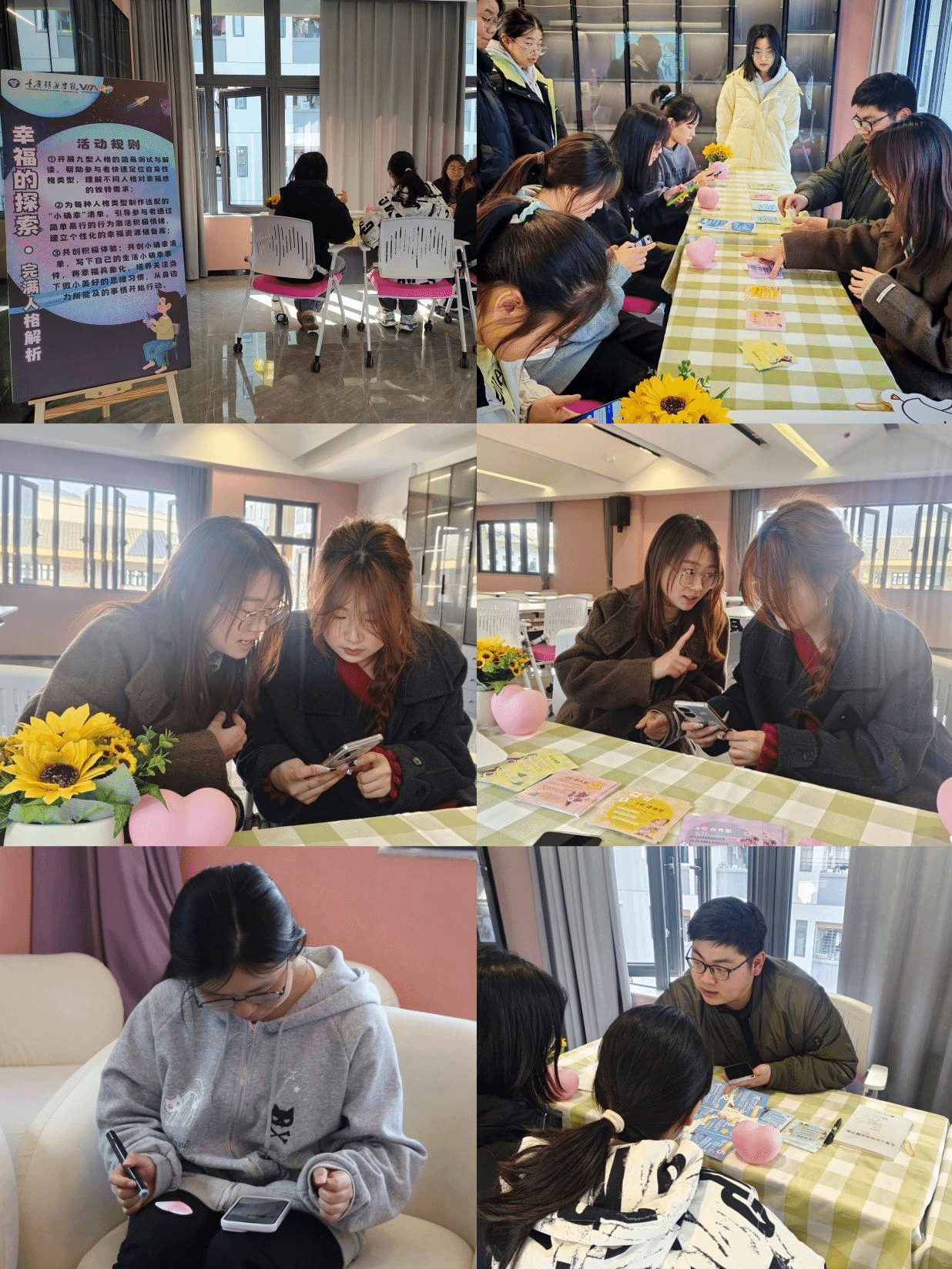 为响应联合国“国际幸福日”倡议,落实《“健康中国2030”规划纲要》中关于心理健康教育的指导方针,2025年3月19日至28日,由重庆移通学院学生处主办、完满人格心理社承办的“3.20”幸福心理体验周活动火热开展,吸引了众多学生参与。本次活动以“幸福”为核心,通过互动体验、心理团辅、艺术表达等多元化的活动形式,引导参与者了解心理学知识,普及幸福教育理念。
