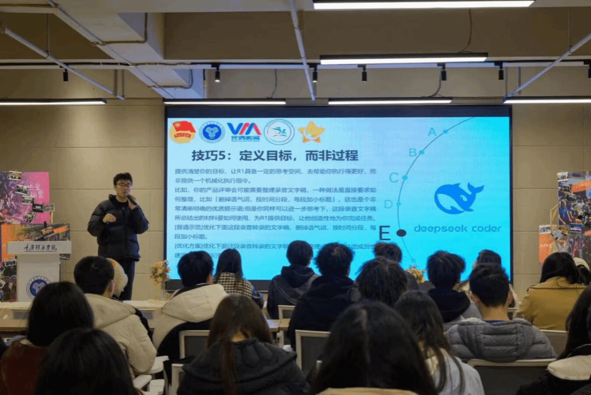 随着数字化时代的快速发展,学生社团在活动策划、文稿撰写、资源查找等方面面临诸多挑战。为应对这些难题,学生社团管理中心于3月19日12:30在南州食堂516闻所未闻·综合路演中心举办了“灯塔”之第四期“社团星制造”学生社团负责人集训营理论课第三课——《AI赋能社团:深入简出Deep Seek》。本次活动旨在通过讲解Deep Seek在社团活动中的具体应用,帮助学生社团提升办公效率、优化活动策划、提高文稿质量,为社团发展注入科技动力。