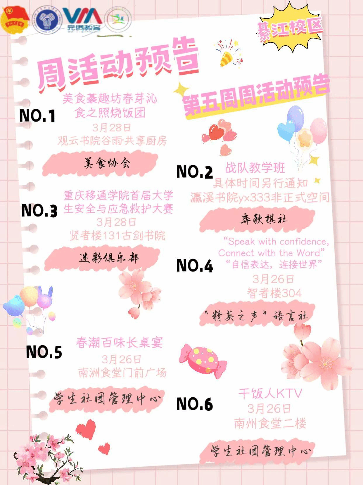 【社团活动】社团之声|第四周社团活动回顾&清单等你来签收