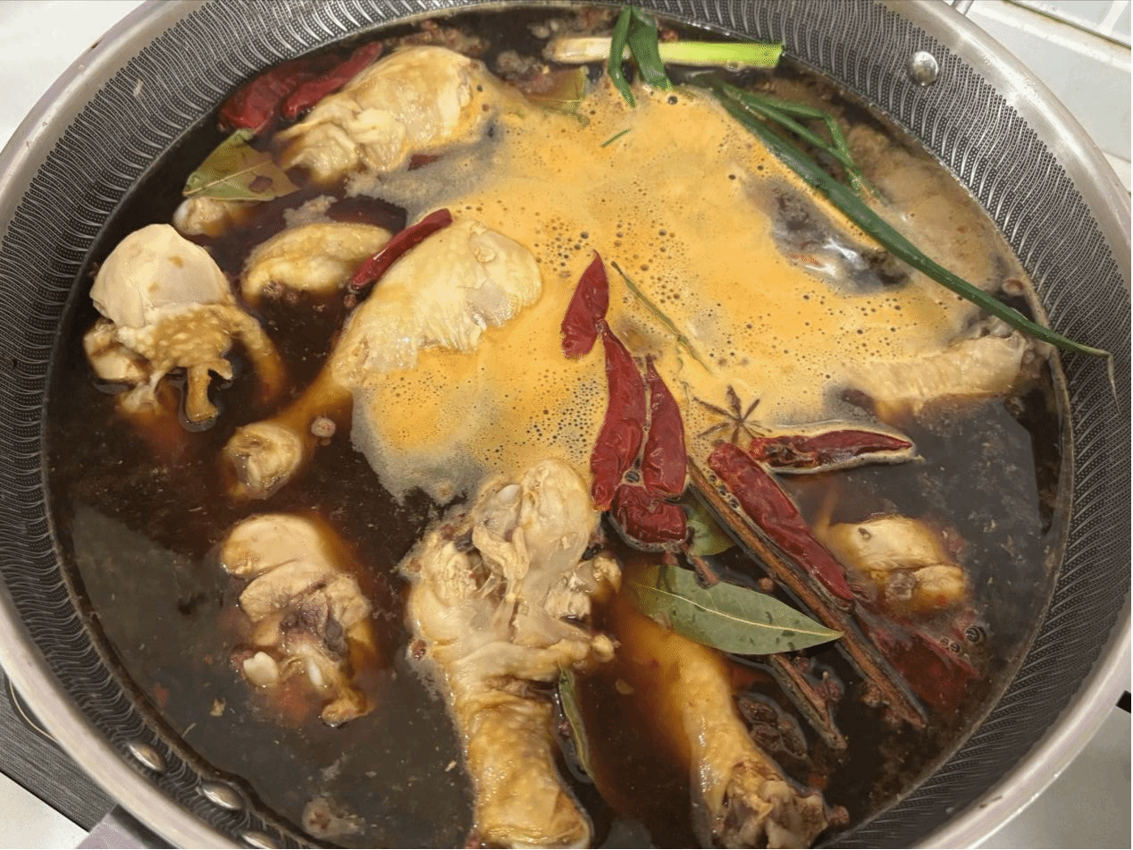活动现场,美食协会提前准备了新鲜的鸡腿以及各种丰富的卤料,包括八角、桂皮、香叶、花椒等,一应俱全。负责人讲解了卤鸡腿的制作步骤:先将鸡腿洗净,冷水下锅,加入姜片、葱段和料酒进行焯水,去除血水与腥味。接着,在另一个锅中倒入适量清水,放入各种卤料,加入生抽、老抽、冰糖等调料,小火慢熬,让卤料的香味充分融合,制成香浓的卤汁。待卤汁熬好后,放入焯过水的鸡腿,小火慢炖,期间不断翻面,确保每个鸡腿都能均匀上色入味。