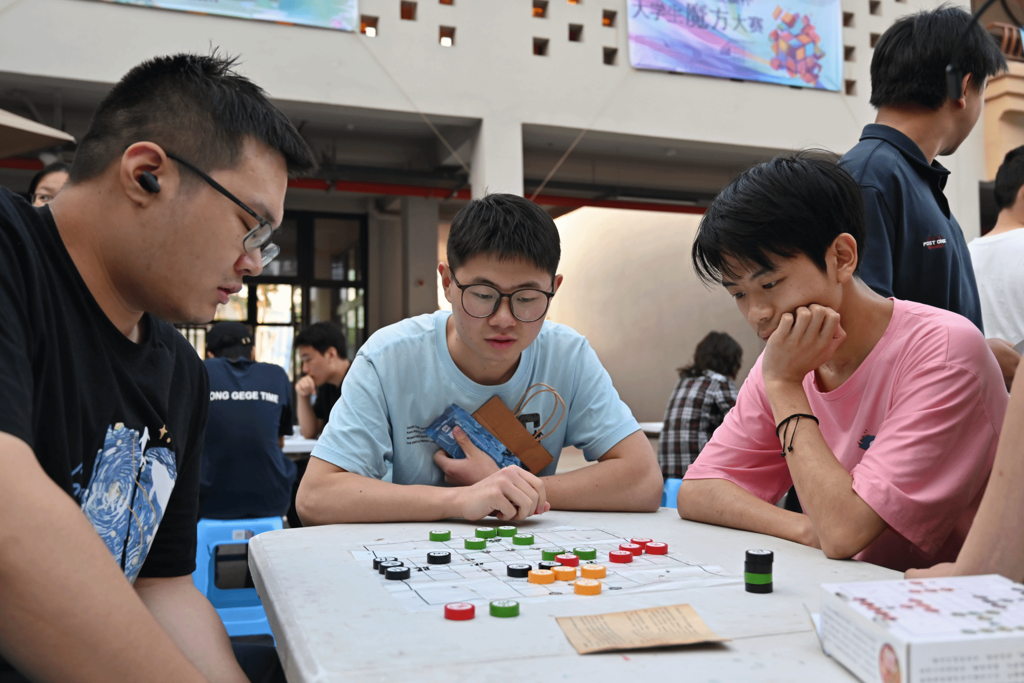 赛场华丽变身为“棋类乐园”,吸引逾100名参赛选手、校内800余名爱好者参与。活动现场设置“双人对弈”“三国象棋”“高尔夫井字棋”等趣味项目,选手们暂离高强度对局,在轻松氛围中感受棋类运动的多样魅力。来自成都中医药大学的史已凡尝试“三国象棋”后笑称:“平时专注围棋,这次跨界体验让我发现棋类互通的策略之美。”