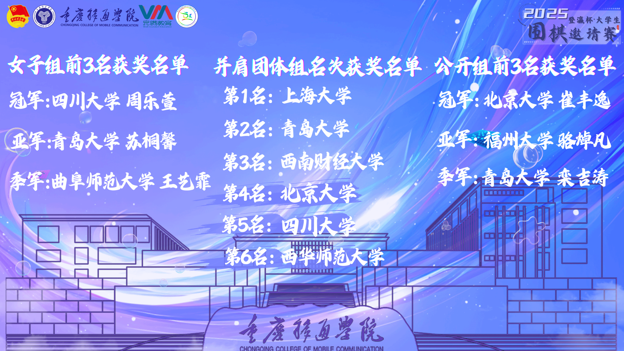 当王校长以暖心致辞在颁奖仪式上欢迎大家时,参赛选手代表来自西南政法大学的刘晨滢用自己4次参与移通棋类赛事的经验狠狠回应、点赞学校,而后组委会代表来自校团委社团发展中心的杨佳燕回首赛事从热爱到破局的点滴瞬间时更是得到在座参赛选手的强烈共鸣。仪式上更有来自校打击乐团、合唱团、舞龙舞狮社带来的艺术&体育精彩节目表演赢得大家连连掌声。专业大咖X顶流解说X超值赛事X精彩环节,这场关于围棋的青春盛会最终由北京大学崔丰逸斩获公开组冠军、四川大学周乐萱斩获女子组冠军、上海大学斩获团体总分第一名。