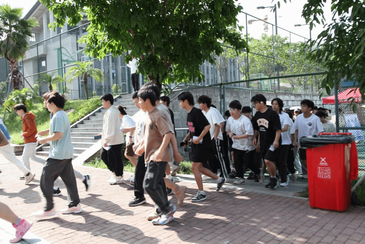 2025年5月9日下午,綦江校区丁山书院至操场区域人声鼎沸,一场由巴别塔动漫社策划的“大淘汰时代:虚域追猎”沉浸式生存挑战活动在此火热开展。200余名学生化身“逃跑者”与“追捕者”,穿梭于校园实景与动漫幻境之间,上演了一场体力、智力和团队协作的终极较量。