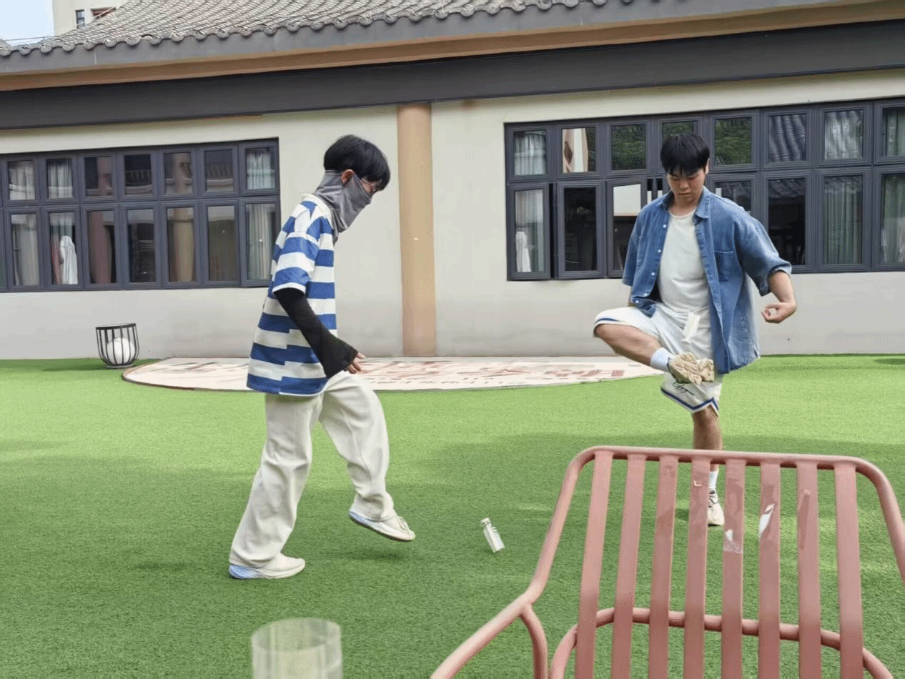 活动最后一站是古剑书院中庭的 “一分钟踢毽子” 挑战。同学们到达后稍作准备,便开始挑战。随着手机计时软件的启动,现场气氛瞬间紧张起来。选手们全神贯注,双腿快速交替,毽子如雨点般上下飞舞,围观同学在一旁大声计数加油。当一分钟结束,无论成绩如何,大家都收获了挑战自我的喜悦。