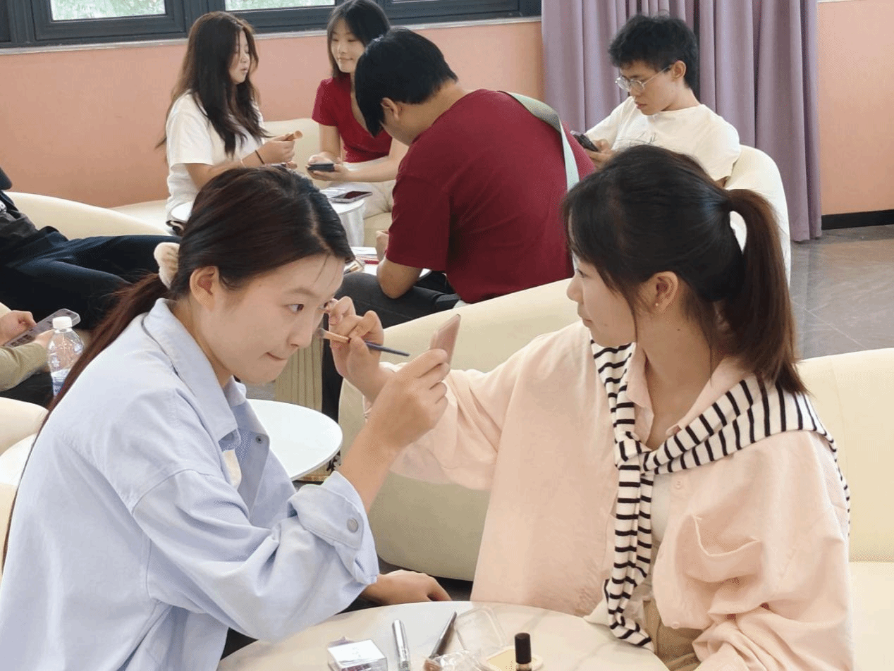 抽取盲盒后,同学们需利用盒内随机分配的化妆品,在规定时间内完成创意妆容。这不仅考验同学们对色彩的感知能力和化妆技巧,更需要充分发挥想象力。活动现场,无论是清新自然的日常妆容,还是大胆独特的创意妆容,都在同学们的巧手下精彩呈现。一位参与活动的同学表示:“这种随机组合的方式很有趣,让我尝试了平时不敢尝试的色彩搭配,收获很大。”这种充满挑战性的活动形式,让参与者在实践中不断突破自我,尝试新风格、新技巧。