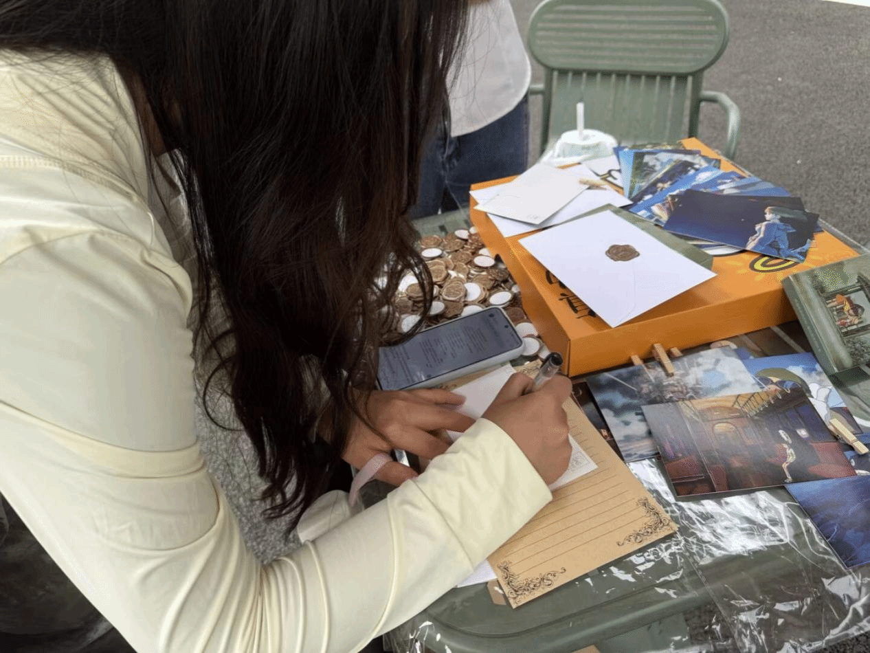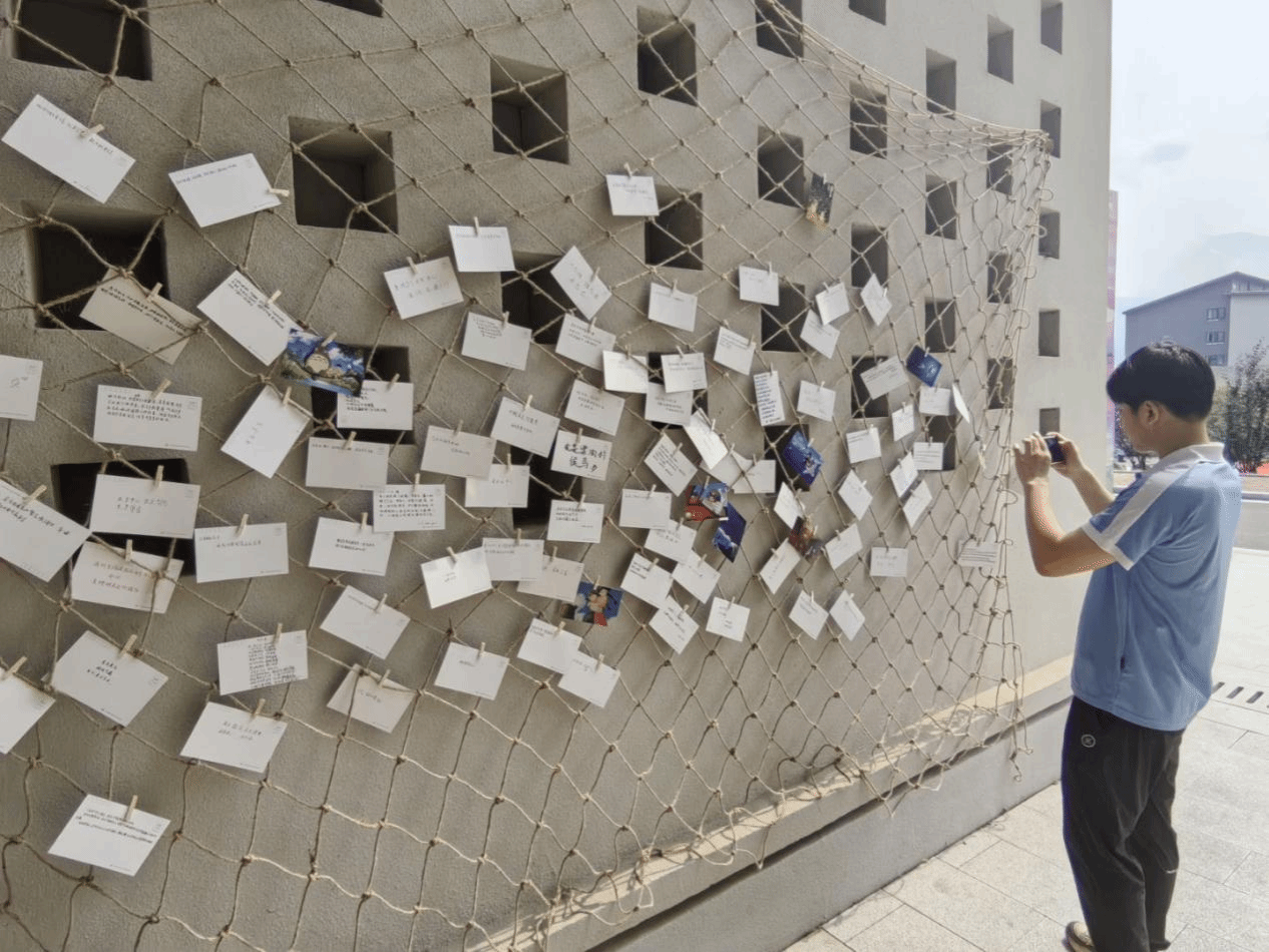 活动区设置于綦江校区丁山书院中庭,共有189位参与者在明信片后完成打卡。完成创作的学子需与自己的作品合影完成打卡环节,并将其发布于自己的社交媒体上,每位离场参与者均可获得文学社准备的纪念信封。