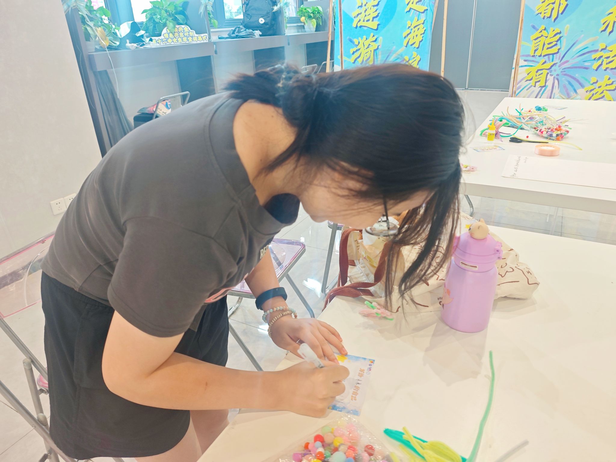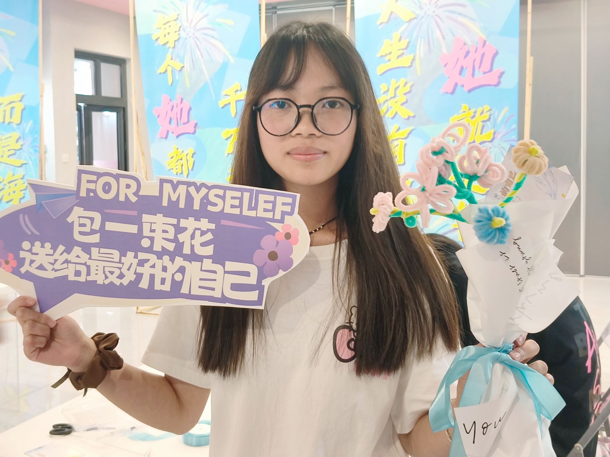 “花语自白”环节以花喻人,参与者们用扭扭棒亲手制作独一无二的花束,每束花艺作品都是女性对自我价值的重构宣言,茎脉缠绕间彰显拒绝被定义的生命力。在轻柔的背景音乐下,来到了最后的“星火契约”环节,匿名誓言卡在轻柔乐声中汇聚成集体精神动能,文字成为连接个体觉醒与群体力量的桥梁,让此刻的感动化作未来前行的星光。