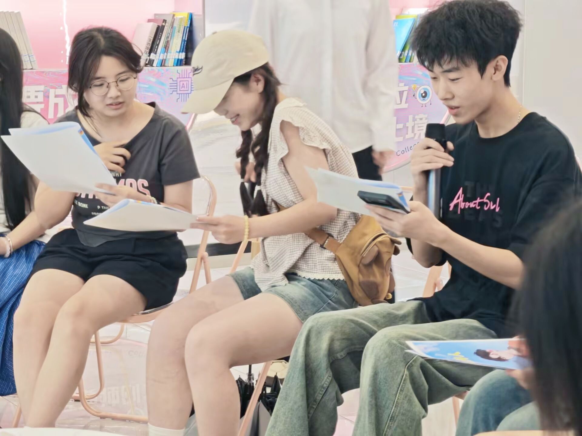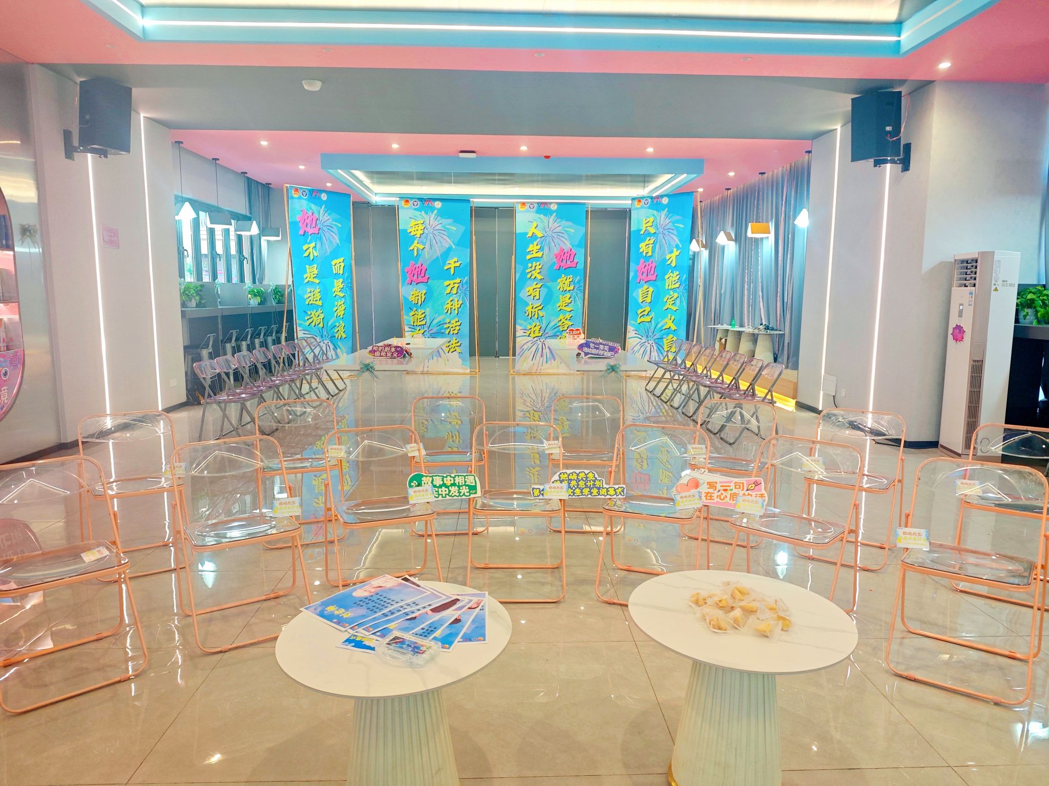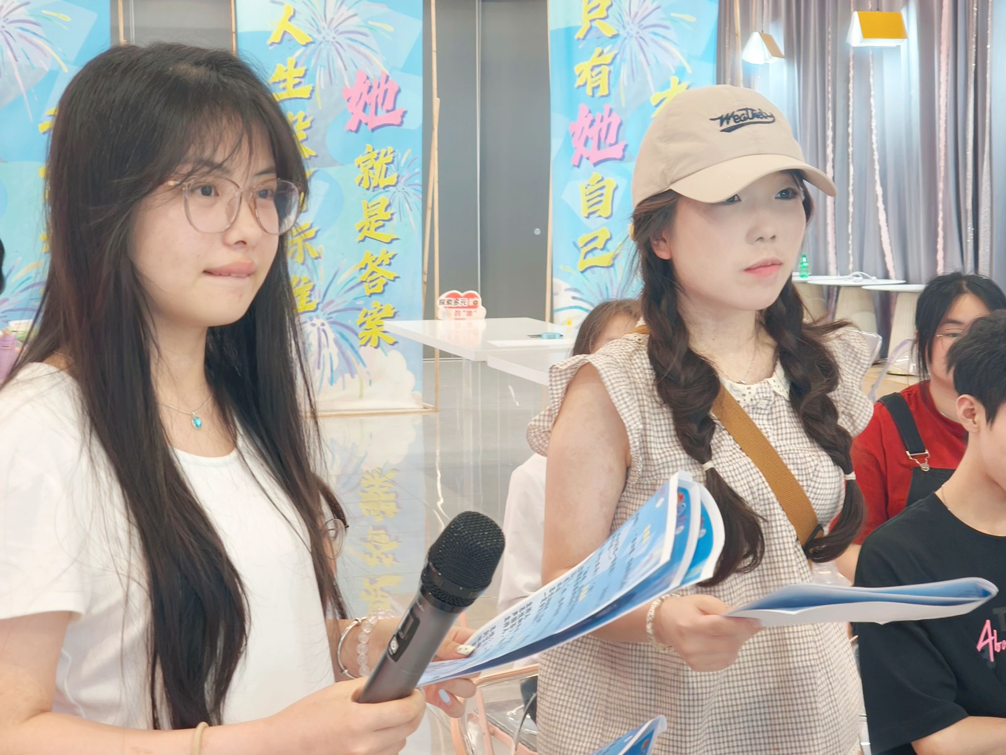 活动以回顾“女生学堂”成长历程拉开序幕。在主持人邹紫君的引导下,来到“破茧剧场”,参与者们抽取《她和她的星空》角色,沉浸式演绎环节,苏悦的容貌焦虑、林晓的理想困境等情节,折射出当代女性的生存困境。全女性场域消弭了表达枷锁,角色故事成为群体共鸣的载体。