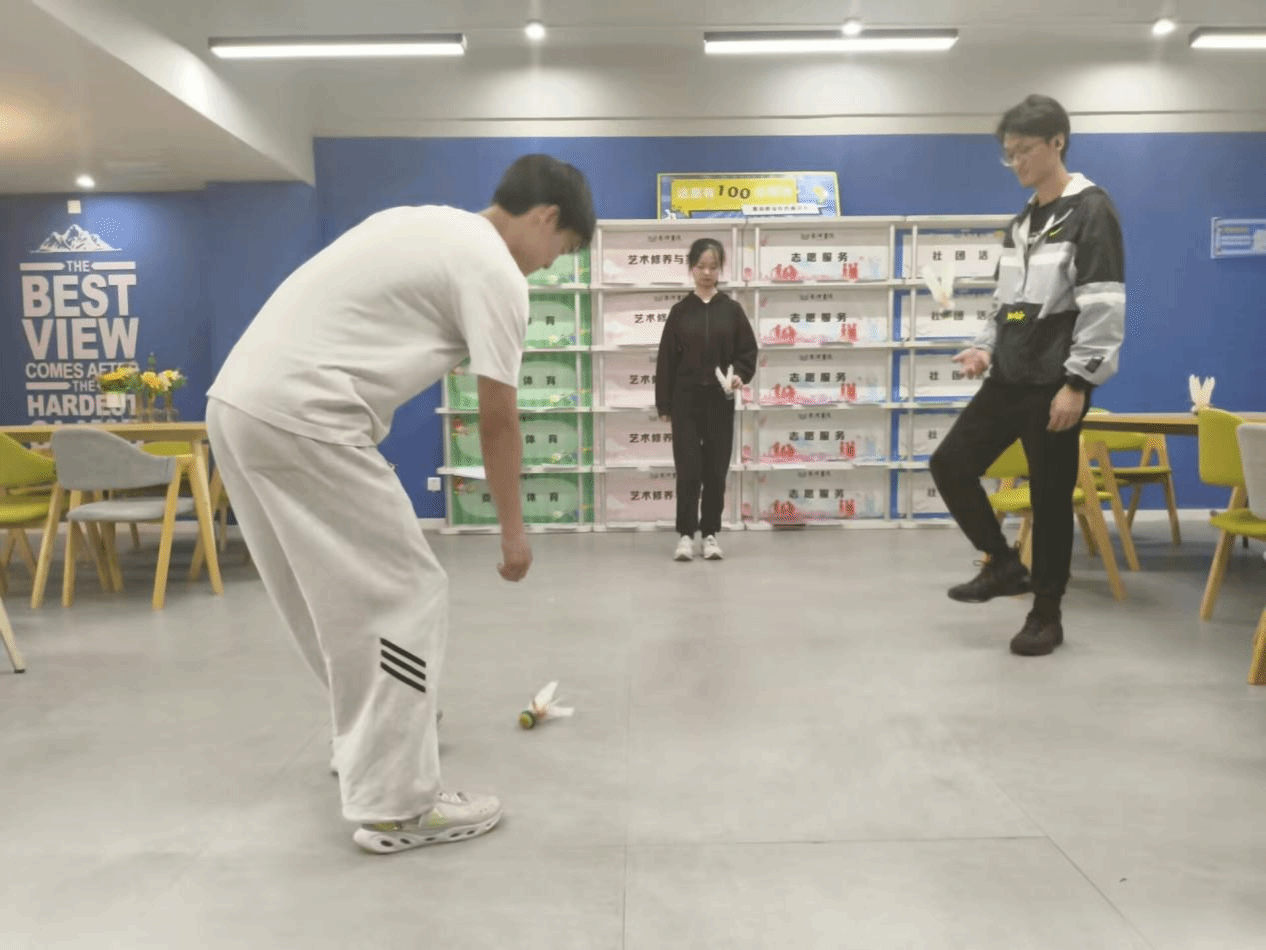 活动伊始,报名参与的同学齐聚长风·交流空间进行线下签到,完成第一天的打卡。打卡内容为踢毽子三十秒视频,同学们纷纷拿出看家本领,轻盈的毽子在他们脚下翻飞,展现出青春的活力与朝气。在接下来的四天里,同学们每天坚持拍摄三十秒打卡视频发送至活动群,由主办方进行认真统计。大家积极分享自己的毽舞瞬间,交流踢毽子的技巧与心得,形成了良好的跨地域交流氛围,也让运动社群的活力愈发浓厚。