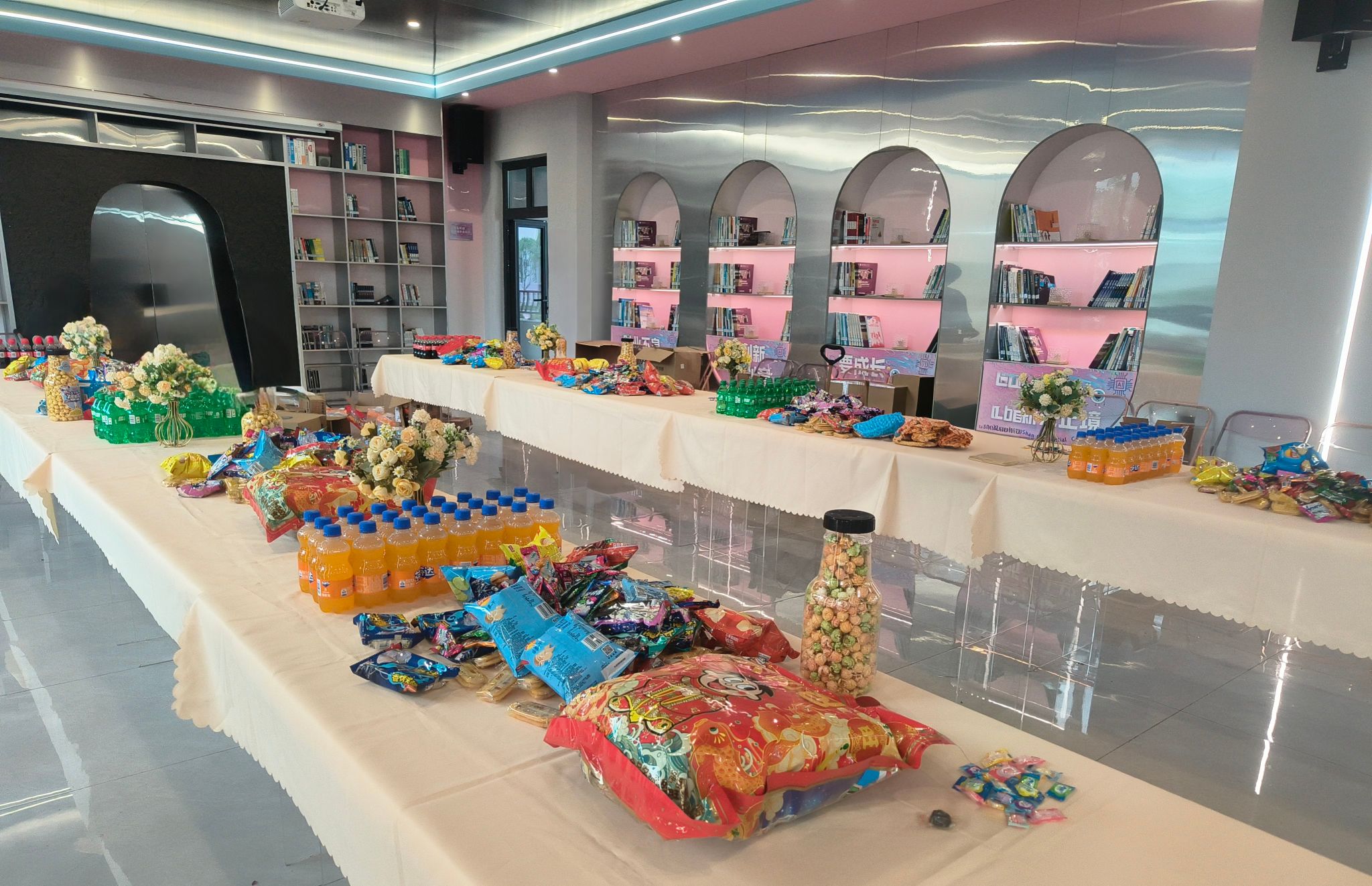 步入活动现场,各学生组织用日常工作照片精心布置的打卡点,讲述属于他们自己的完满故事,成为合影留念、铭记情谊的热门打卡背景。琳琅满目的零食饮料水果摊位成为师生们轻松交流、分享喜悦的驿站,饱含祝福的美食为这场传承盛宴增添了甜蜜回味。