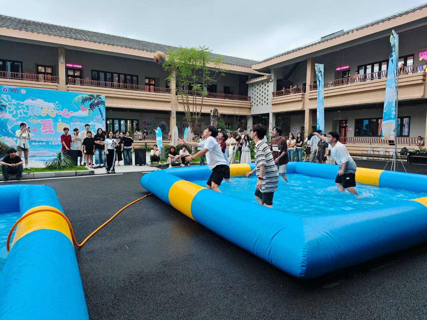从泳池派对的淋漓释放,到互动游戏的团结拼搏,再到照片打卡墙的情感联结,水花不仅承载着清凉,更映照出移通校级组织干部饱满的活力、深厚的同窗情谊与不负韶华的青春姿态。当水影映照星光,“流影沁心,夏韵同振”已成为八大校级学生组织今夏最动人的集体记忆。
