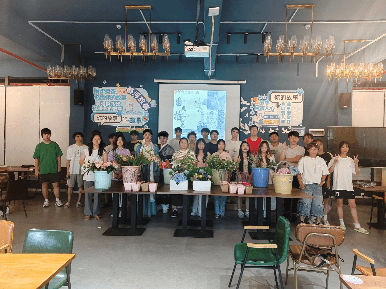 活动尾声,一件件饱含巧思的国风插花作品陆续呈现。同学们漫步其间,欣赏、交流,用镜头记录美好。参与者分享创作感悟,有人说“在插花中,读懂了古人以花寄情的浪漫”;有人感慨“汉服与花艺的碰撞,让传统文化变得可触可感”。最终,活动以大合影收尾,镜头中,汉服与花艺交织,笑脸与繁花相映,定格下这场国风盛宴的美好,活动在一片诗意氛围中落下帷幕,超90名参与者带着对国风文化的新认知,满载而归。